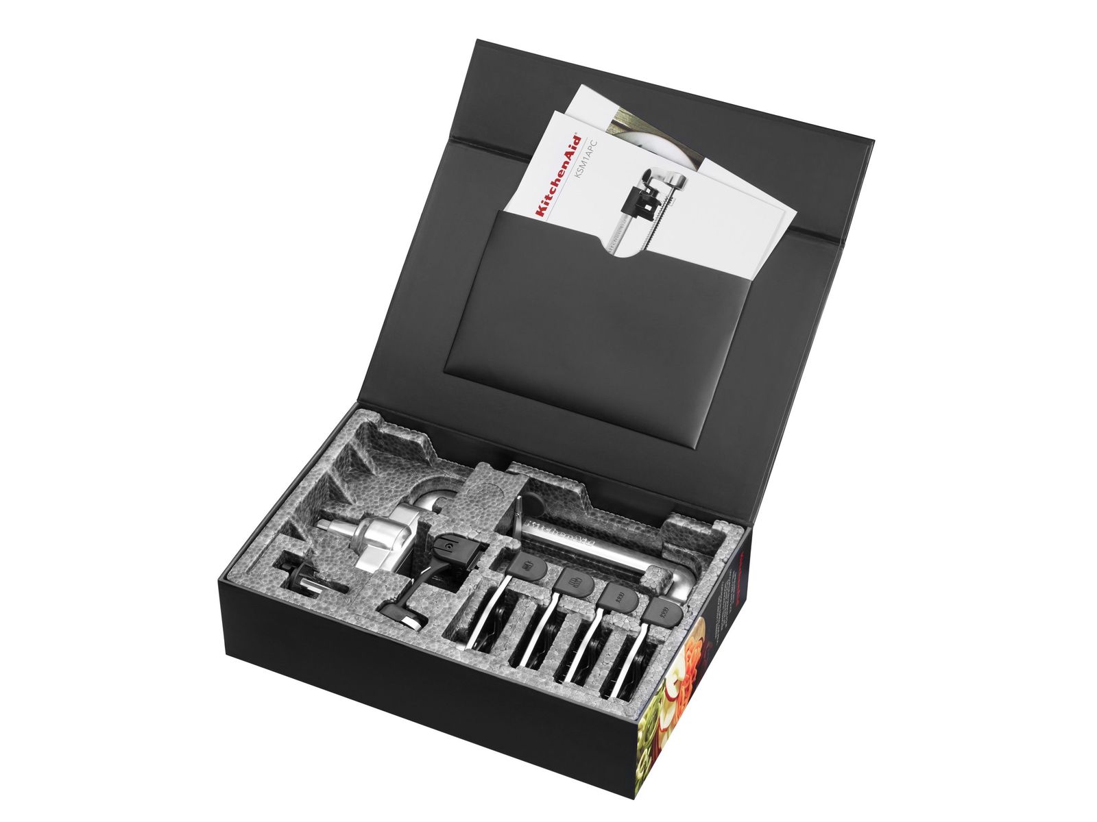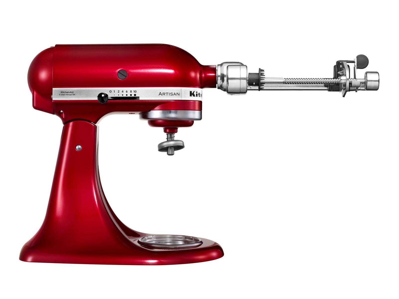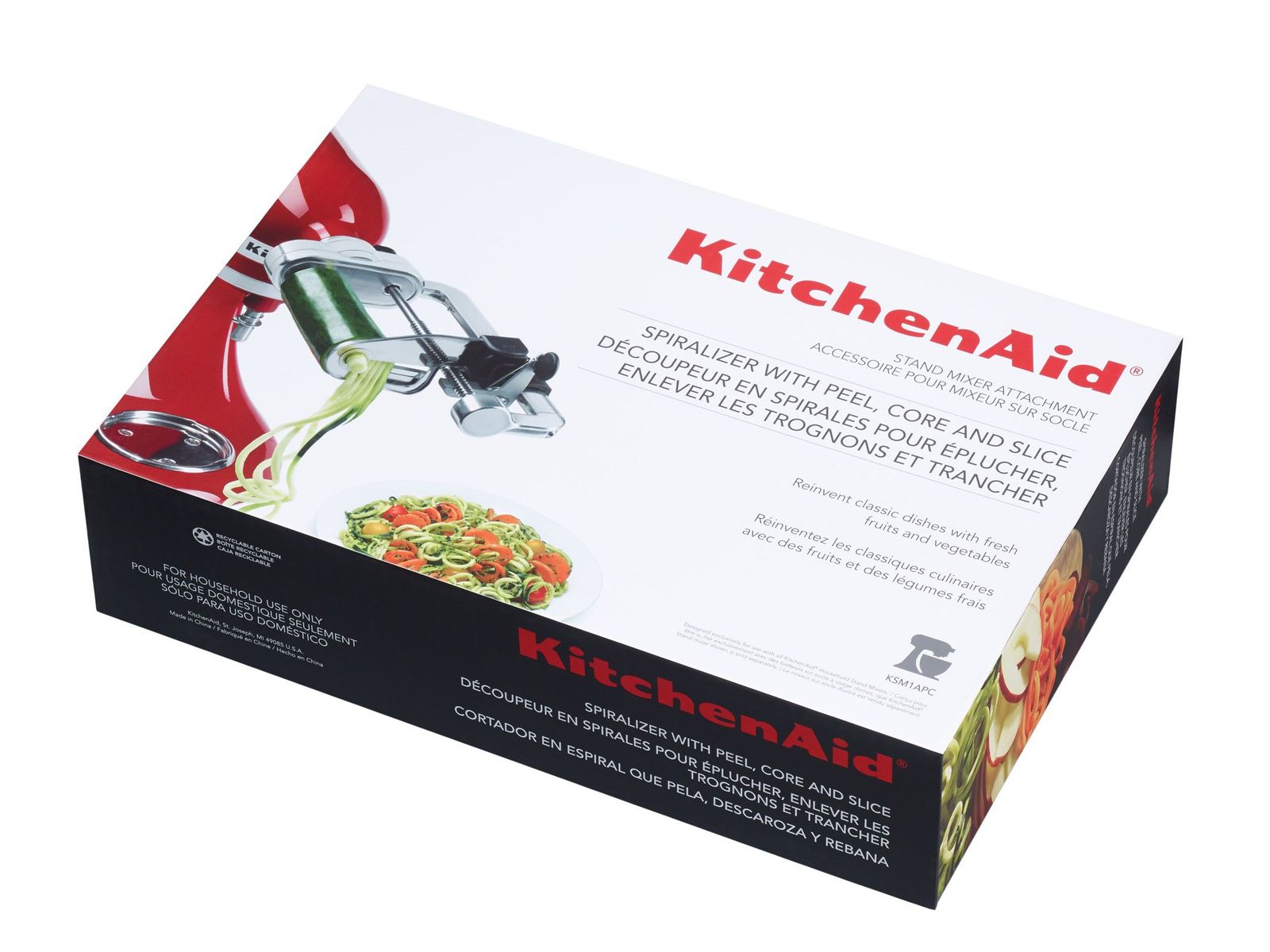 We willen met z'n allen graag gezonder eten, en dan is een spiraalsnijder een must have om creatief te koken. Zo kan je noedels en pasta vervangen door groenteslierten en gemakkelijk gezonde alternatieven bereiden. Ideaal dus als je gluten of koolhydraten wil vermijden. Bereid je voor op een nieuwe draai aan de oude klassiekers! Spiraalsnijders hebben scherpe messen die vruchten en groenten in dunne krulslierten snijden, om zo verleidelijke nieuwe gerechten te creëren die het beste uit de natuur halen. Dit nieuwe KitchenAid-toebehoren wordt geleverd met twee spiraalmessen (dun en medium) en twee krulmessen die groot of klein kunnen ontkernen en gewafelde plakjes snijden. Er is ook een handenvrij schilmes verkrijgbaar. Als je dagelijks gezond eet, is het belangrijk te weten dat dit hoogwaardige hulpmiddel zeer duurzaam is. De metalen constructie garandeert langdurige prestaties, en de hulpstukken worden aangedreven door de as van de mixer/keukenrobot, voor extra stabiliteit en betrouwbaarheid. Compatibel met alle mixers/keukenrobots.