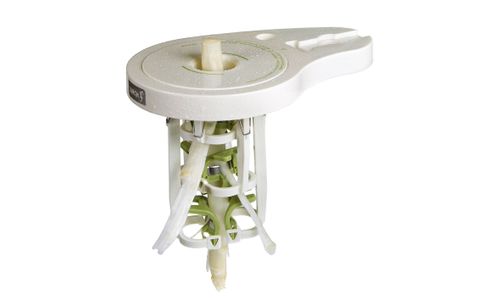 Lurch Aspergeschiller Iedereen die ooit asperges heeft klaargemaakt herinnert zich het enorme werk dat het schillen van asperges met zich meebrengt. Met de aspergeschiller van Lurch wordt dit karwei een plezier van enkele minuten. Het volstaat de asperge door een soort pijp met 6 vlijmscherpe mesjes te halen en hij komt er aan de andere kant weer mooi geschild uit. De kop van de asperge wordt niet beschadigd en de asperge is niet te dik of te dun geschild. De aspergeschiller is nl. voorzien van een veersysteem dat zorgt dat de mesjes, vervaardigd uit roestvrij staal, zich aanpassen aan de dikte van de asperge. VIDEO[movie:youtube]YouTube video player,265,179,http://www.youtube.com/embed/F_IuNHxDLos[/movie]