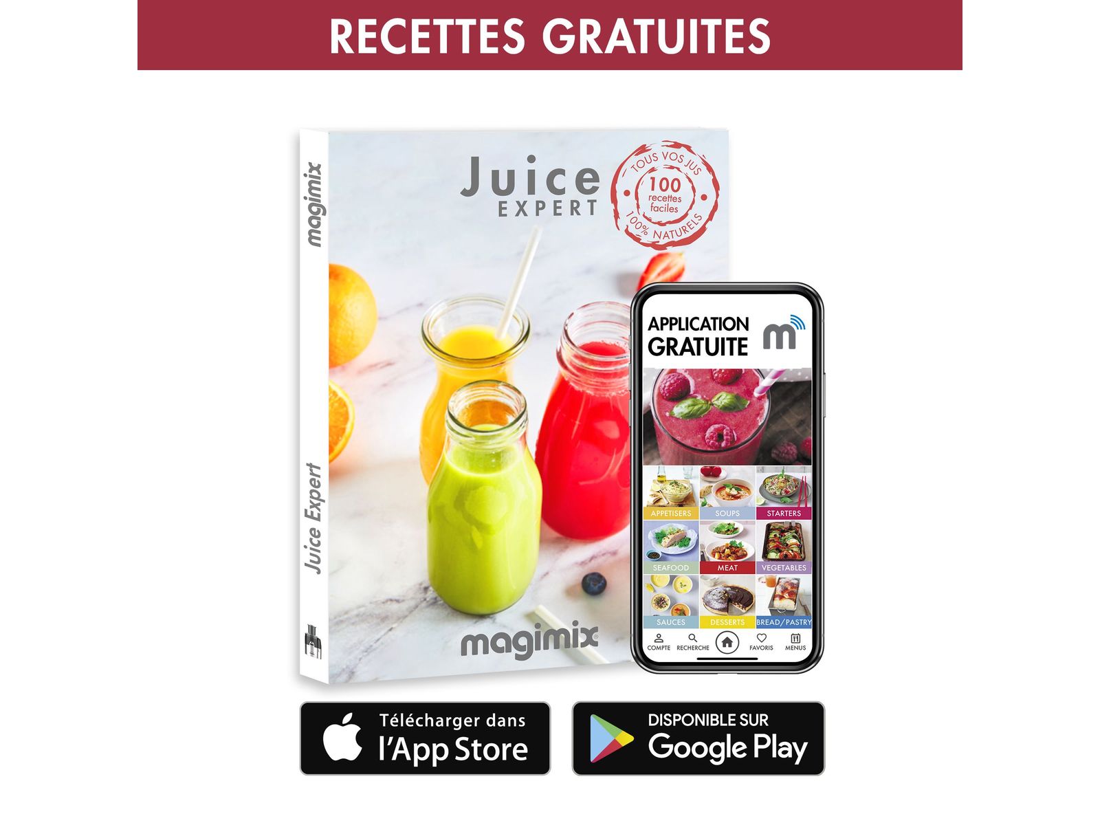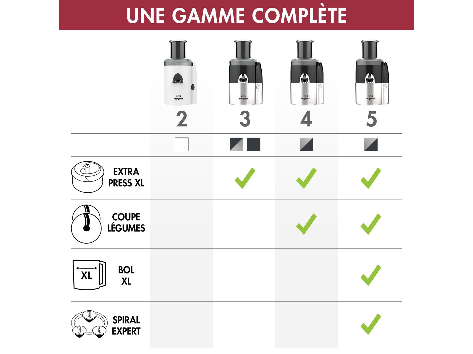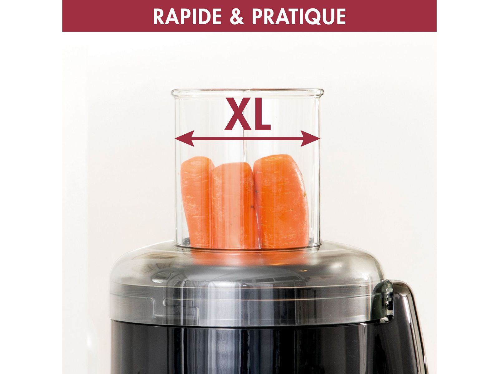 XL Extra Press om door koude extractie smoothies, melkdranken of sausen te maken van zachteof gekookte vruchten en groenten. Magimix patent