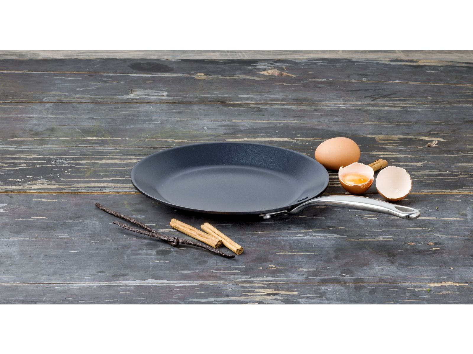 Pannenkoeken bakken is altijd een beetje feest! Met de mooie Barcelona pannenkoekenpan bak je ze in stijl.Het elegante zwarte design is afgewerkt met een greep in roestvrij staal die stevig in de hand ligt. De pan is gemaakt van ultrasterk gehard aluminium en zorgt voor jarenlang bakplezier. Dankzij de gezonde keramische Thermolon antikleeflaag (PFAS-vrij) blijven je pannenkoeken niet plakken, flip je ze als een échte pro en glijden ze vlotjes van de pan op je bord. Een must-have in je keuken!