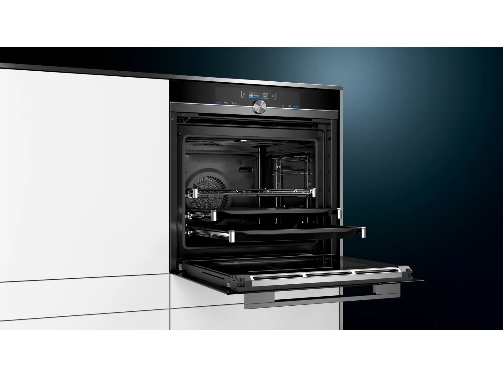 Door de optionele 'snel voorverwarmen'-functie is de oven buitengewoon snel warm, zonder extra energieverbruik. Het duurt bijvoorbeeld slechts ca. 5 minuten om de oven voor te verwarmen tot 175 °C (met 3D hotAir verwarming).