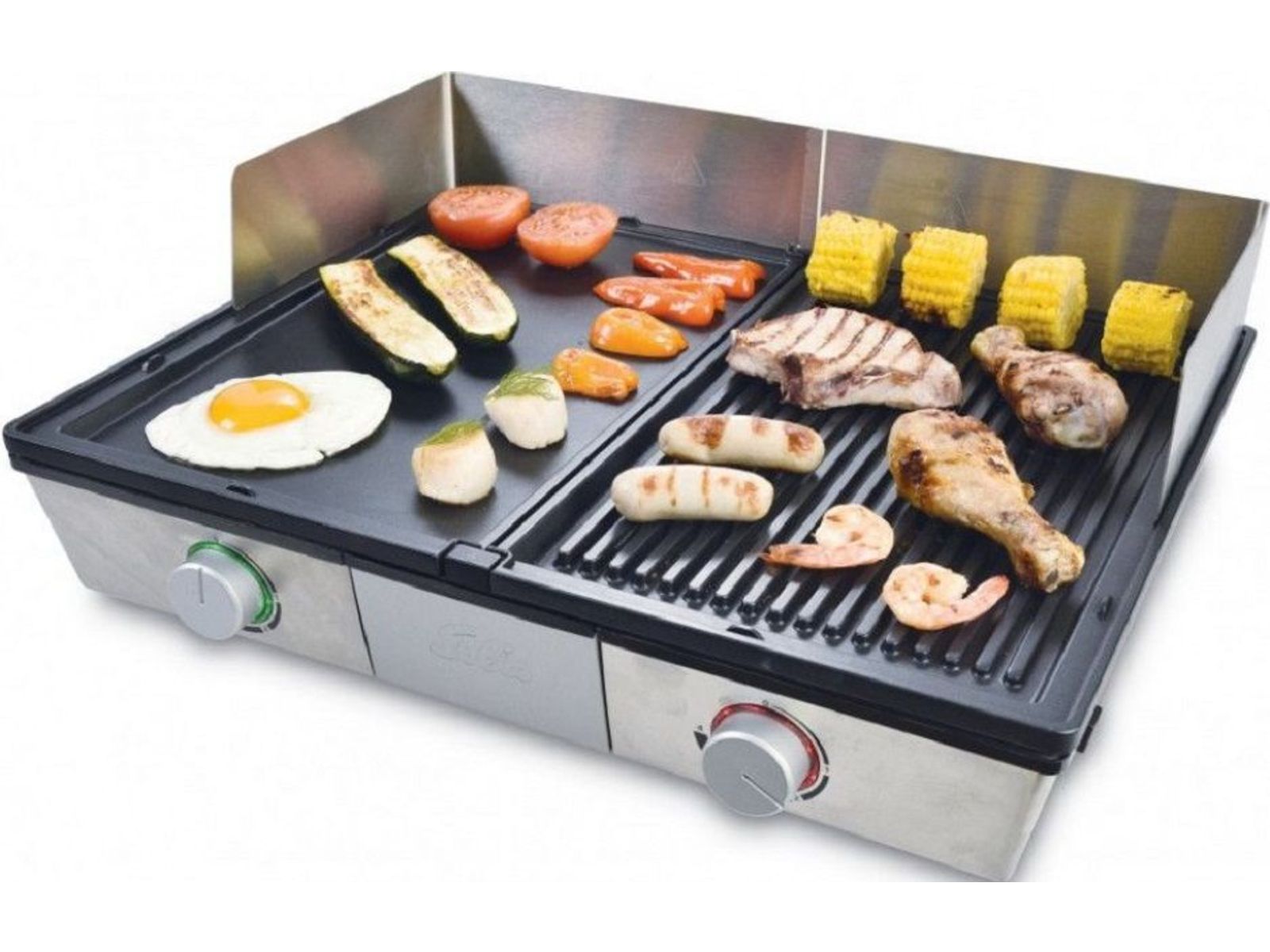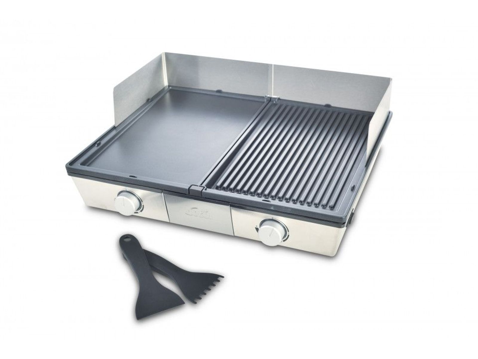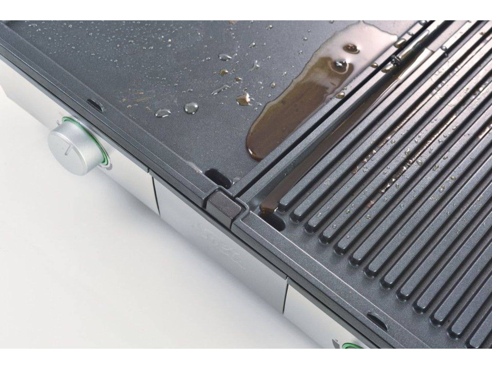 Tafelgrill met grote afneembare en voor de vaatwasser geschikte grillplaten van massief gietaluminium voor een optimale hitteoverdracht en opslag.