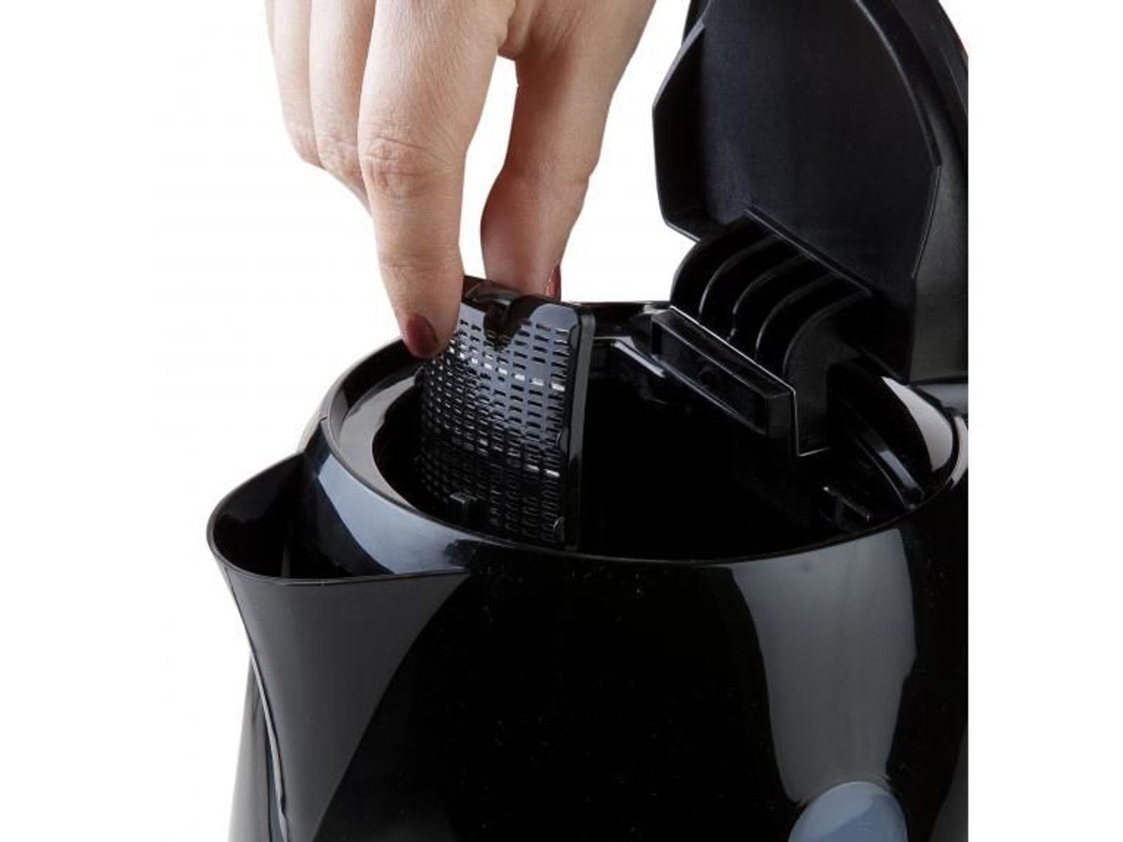Een dampende tas thee, een lekker minuutsoepje of snel een oploskoffie? Kook je water met DO9194WK van DOMO. Met deze waterkoker kook je tot 1,7 l, de hoeveelheid lees je af op de waterniveauaanduiding. Het stijlvol zwart toestel past in elke keuken. In de schenktuit zit een verwijderbare filter, zo heb je nooit kans op kalk in je tas. De waterkoker kan 360° draaien op de basis. In deze basis is een opberging voorzien zodat je het snoer kan wegwerken. Als je water het kookpunt heeft bereikt, schakelt het toestel automatisch uit.