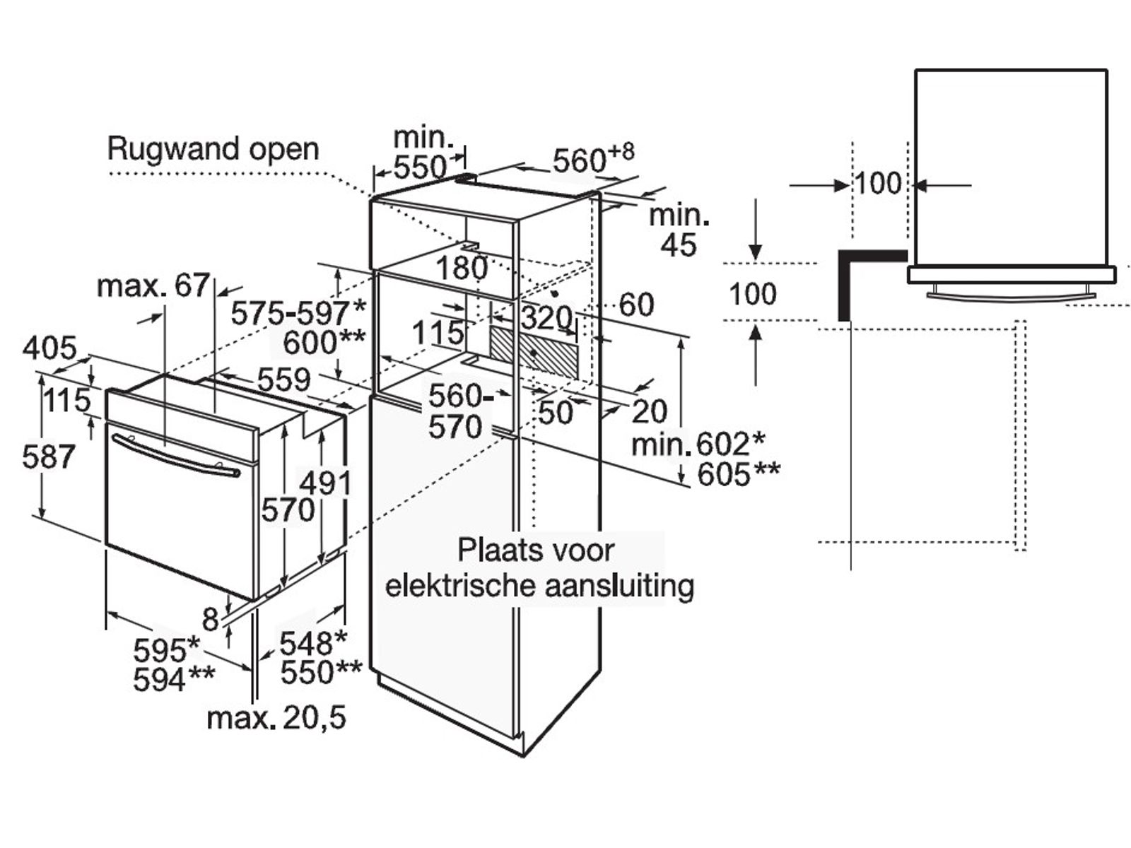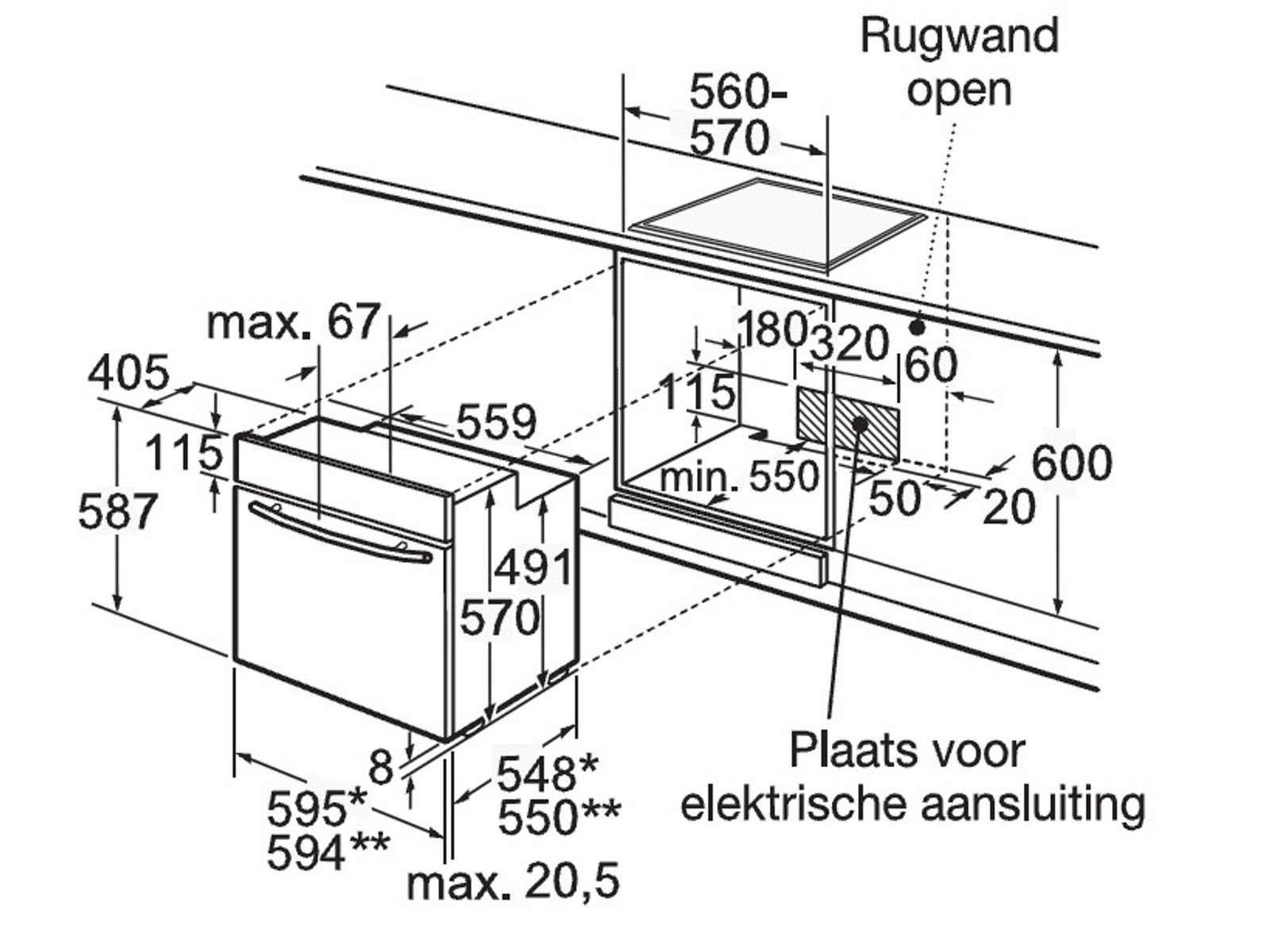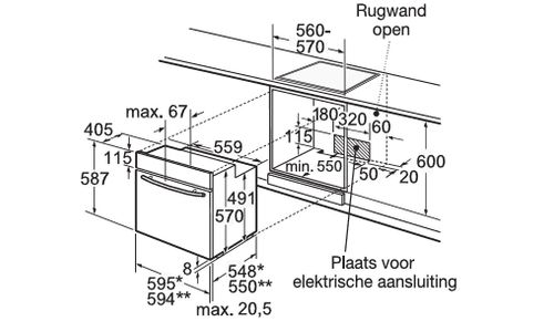 • Inbouwafmetingen (H x B x D) 600 X 560 X 550 mm