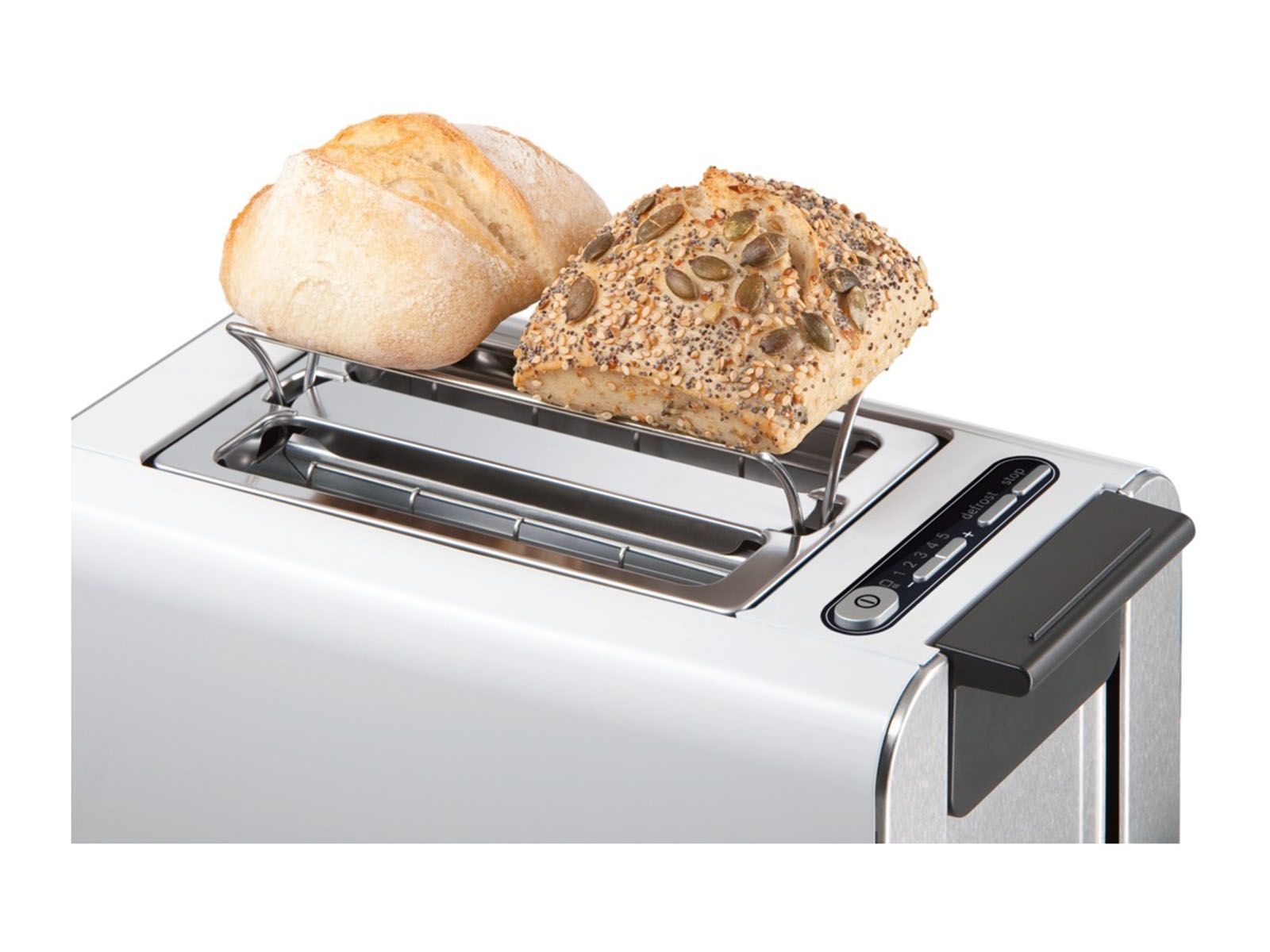 Om ieders brood geheel naar wens te kunnen roosteren, heeft Bosch een digitale roostergraadinstelling met geheugenfunctie ontwikkeld. Deze technologie onthoudt