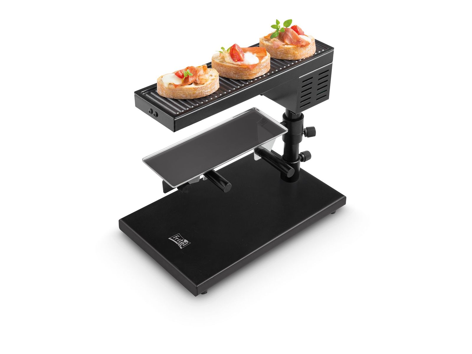 Haal de sfeer en gezelligheid van een Zwitserse chalet in huis met deze traditionele kaasraclette. Bovendien kan je met dit FRITEL apparaat veel meer dan alleen kaas smelten. Wat dacht je bv. van een mini pizza of geitenkaasje als voorgerecht, of van gegratineerde aardappeltjes bij de kaas en van een cre?me brule?e als nagerecht? De bakplaat bovenaan het toestel kan tegelijk gebruikt worden om broodjes voor bij de kaas te grillen, maar er kunnen ook vlees, vis, groentjes,... op bereid worden!