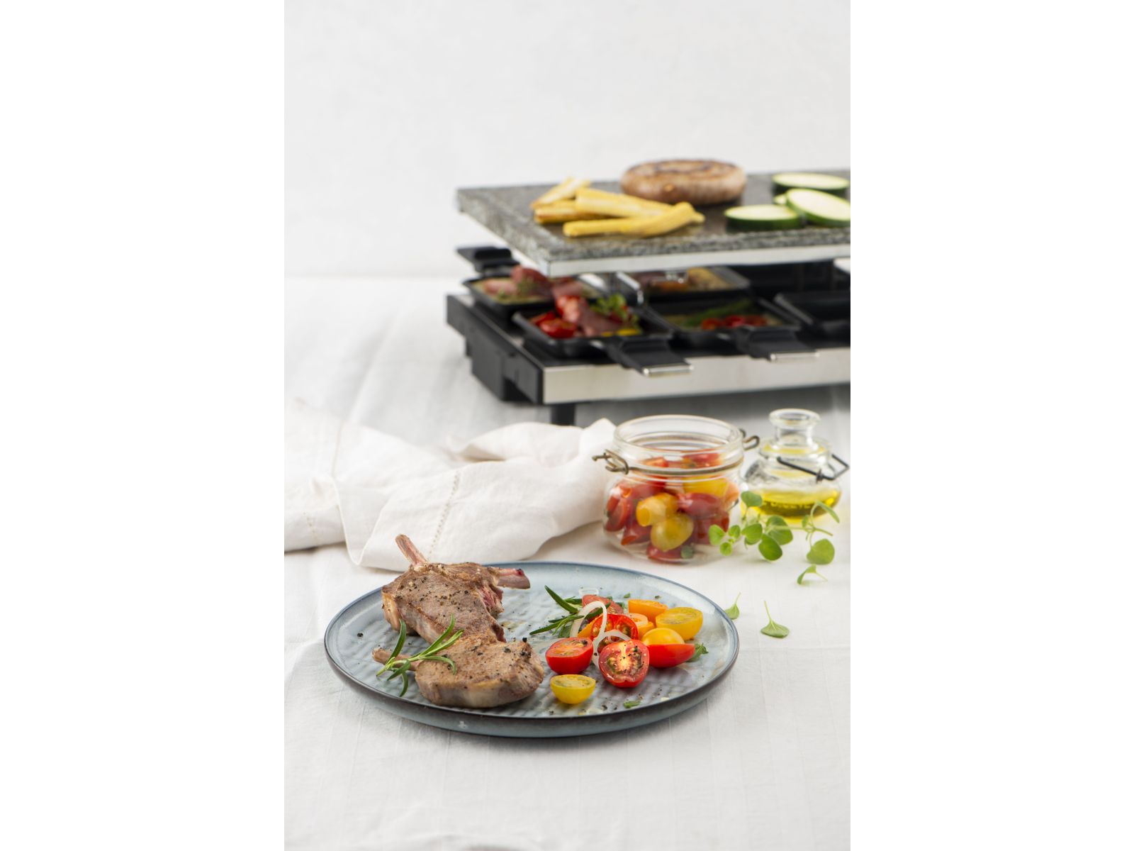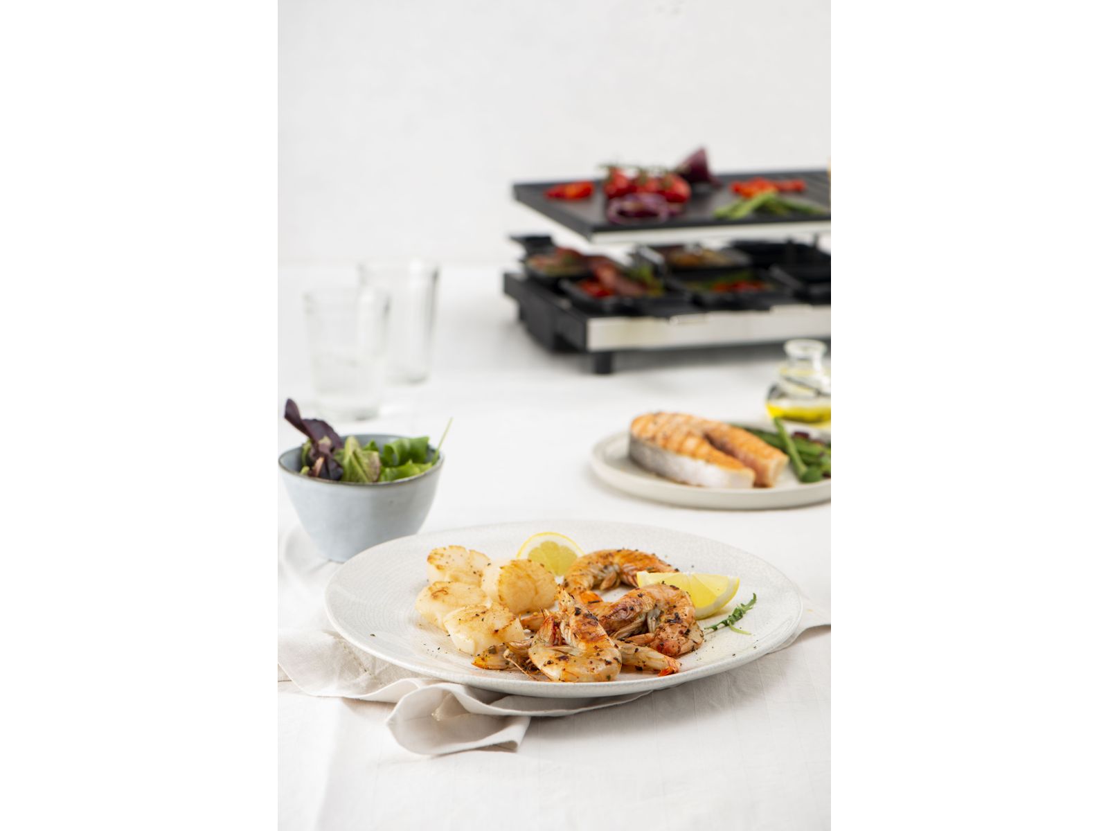 Wow! Met deze trendy en strakke raclette grill met 2 in 1 bakplaat van FRITEL maakt u gegarandeerd indruk tijdens een sfeervol etentje of een feestje. U tovert een volledig menu voor 10 personen op tafel en dit zonder uren in de keuken te staan!