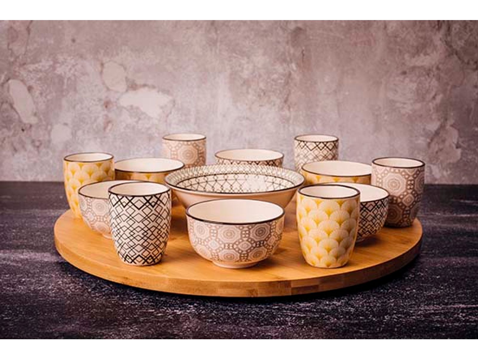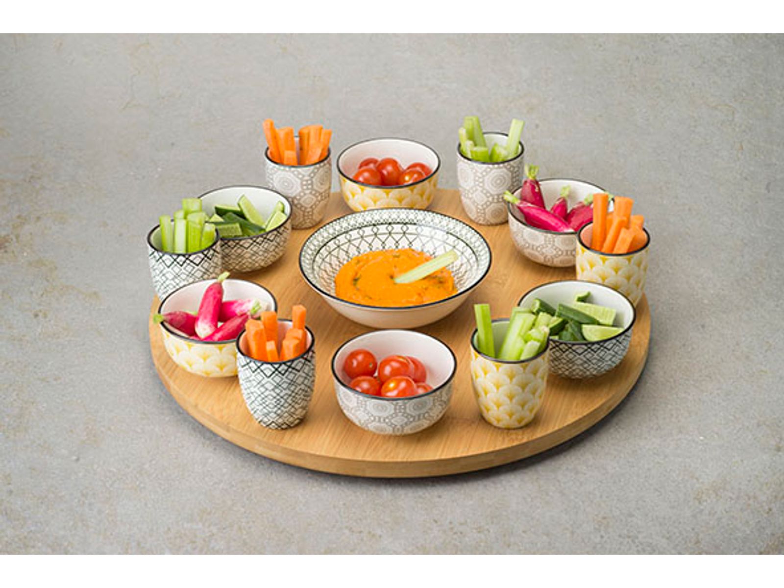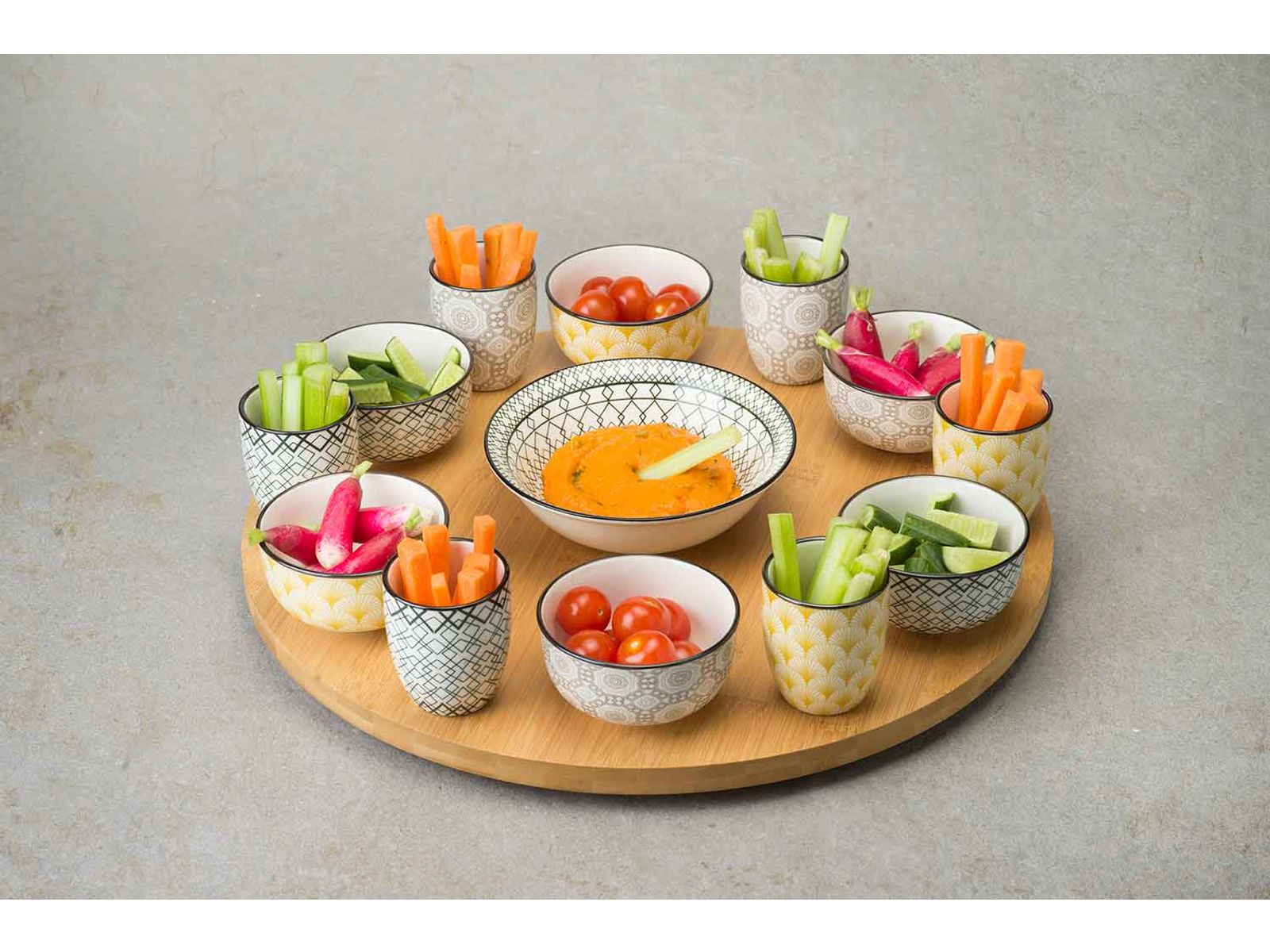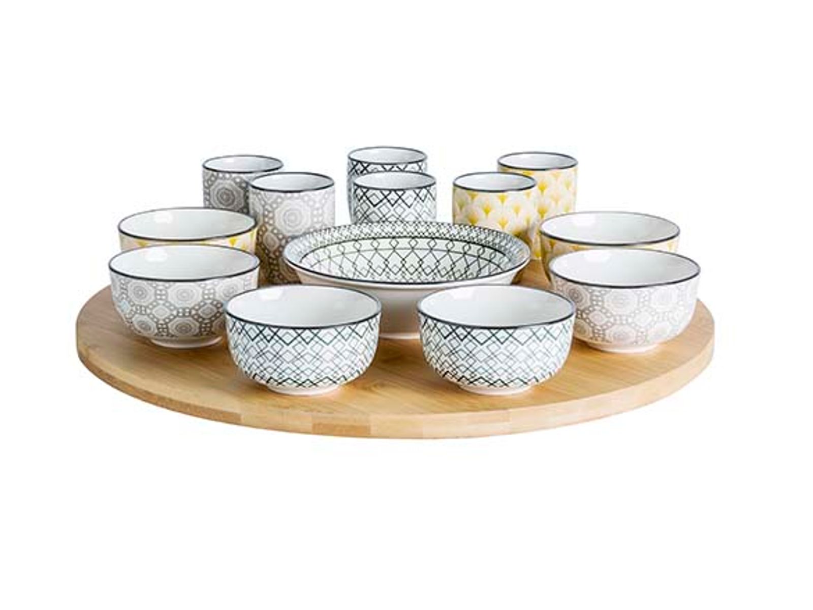 Azra 14dlg Draaischotel D40cm Bamboe Bowl 6x 9x4,8 - 6x 5,6x6,7 - 1x 15x4,8