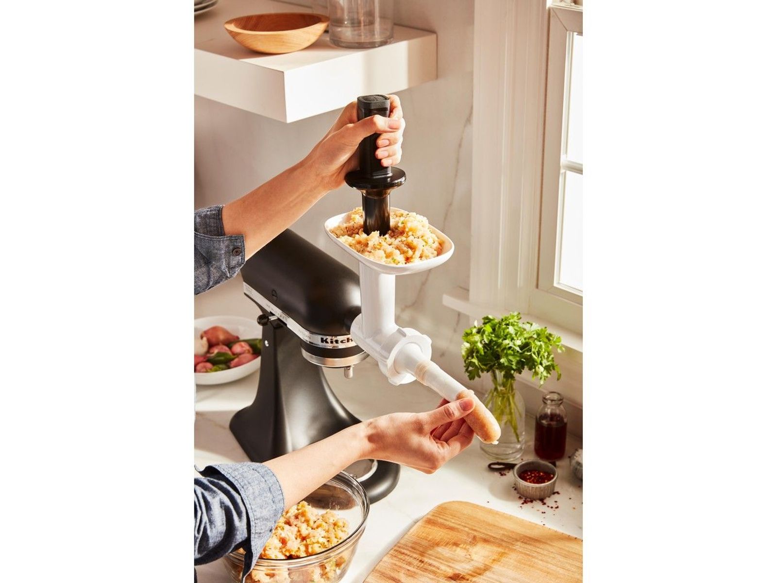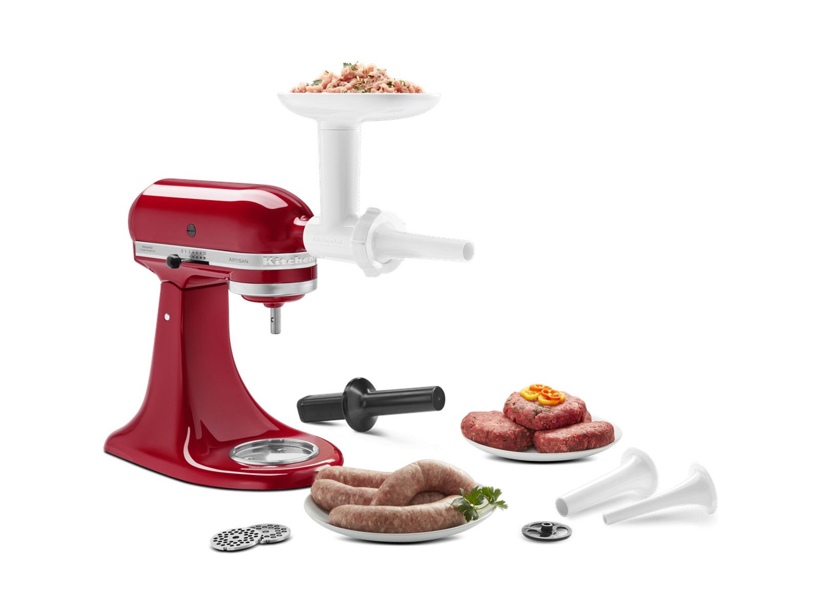 Ontworpen voor gebruik met de voedselmolen (5KSMFGA), voor het maken van een groten verscheidenheid aan worstjes.