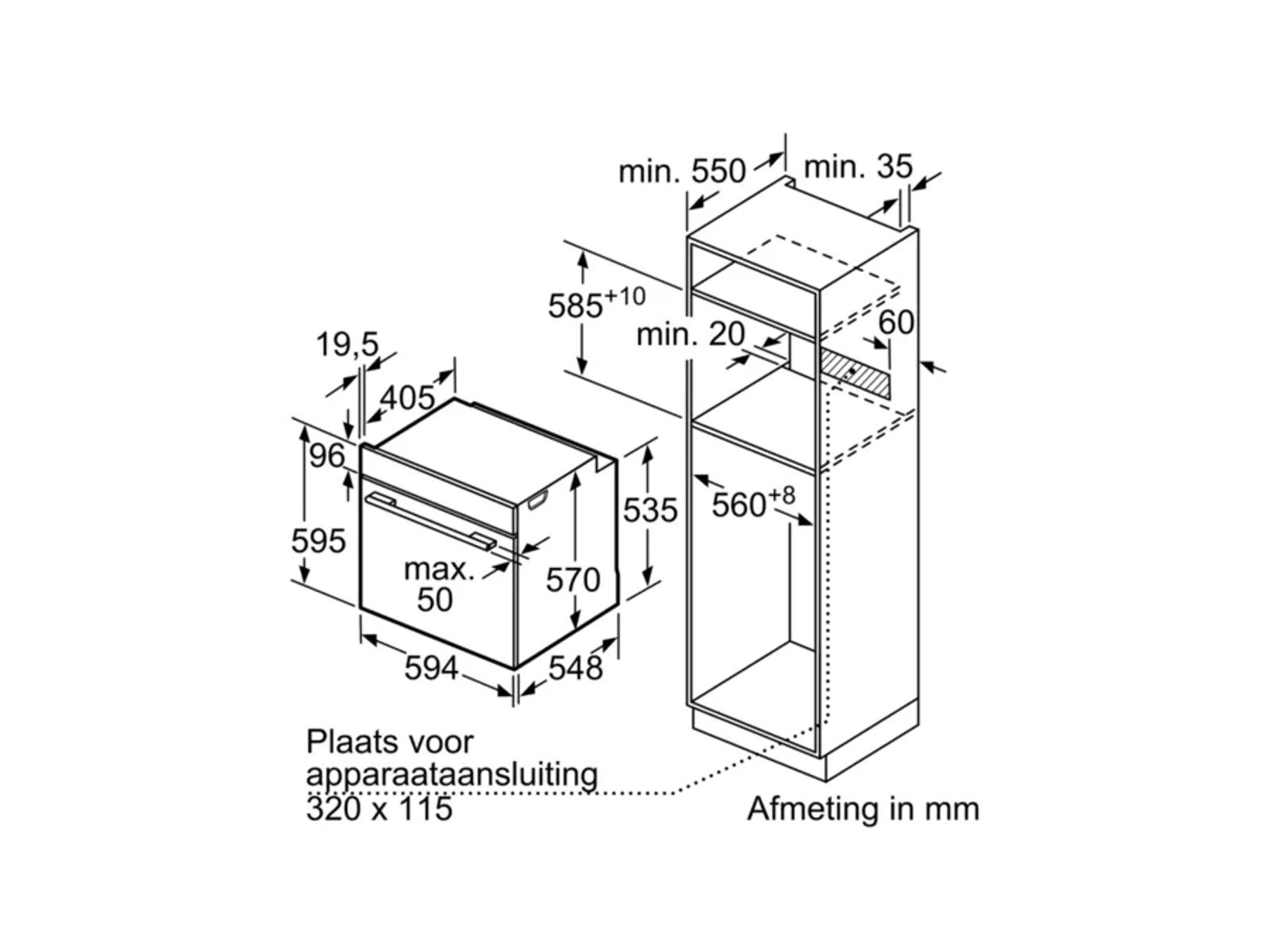 ++ Nishoogte (minimaal): 60 cm ++ Inhoud ovenruimte: 71 Liter ++ Reiniging van de oven: Katalyse ++