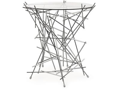 Kleine tafel met onderstel van verchroomd staal en glazen blad.