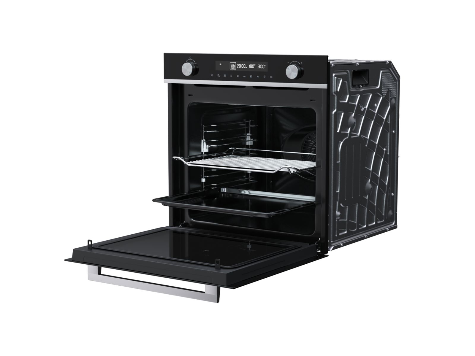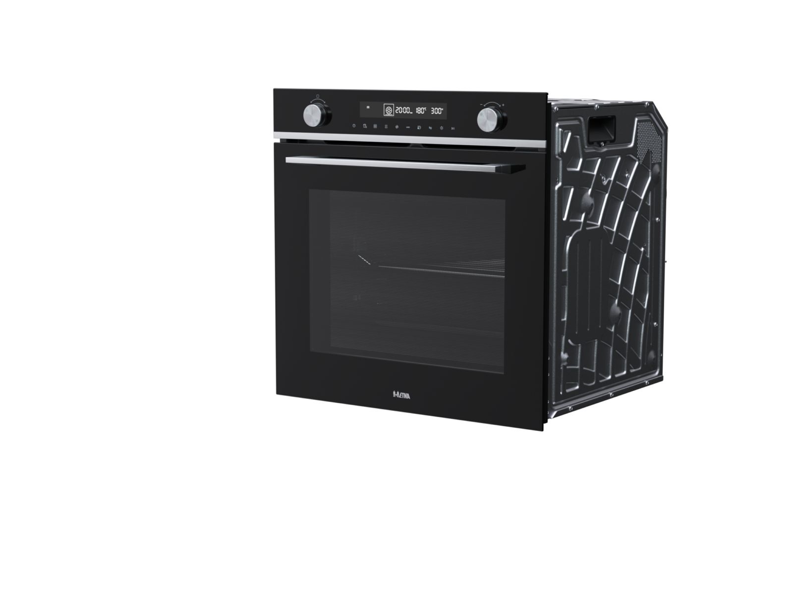 De nieuwe ETNA MO470ZT multifunctionele oven mét magnetron is een opvallende verschijning dankzij de combinatie van zwart glas met RVS details en een XL inhoud van 71 liter. Uniek is de combinatie van de oven met volwaardie magnetron (100-800 W) voor een 60 cm nis. Het LED display met volledige touch control en de verzinkbare draaiknoppen in RVS maken de oven intuïtief in gebruik. Met 13 ovenfuncties, 10 automatische kookprogramma’s en verschillende combinatiestanden een oven die het hart van de thuiskok sneller doet kloppen. De binnenruimte van de oven heeft vijf insteekniveaus met zijrekjes en wordt helder verlicht dankzij de duurzame LED verlichting. Om optimale veiligheid te bieden beschikt de MO470ZT over een kinderslot, een klapdeur met driedubbel glas en een digitale timer met uitschakelfunctie. De binnenruimte is uitgevoerd in easy clean emaille voor extra schoonmaakgemak.