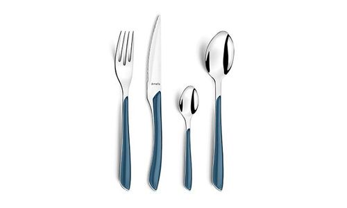 Het Amefa Eclat bestek heeft een heldere en diepe kleur. Het bestek heeft een moderne en eigentijdse uitstraling en geeft je tafel kleur.