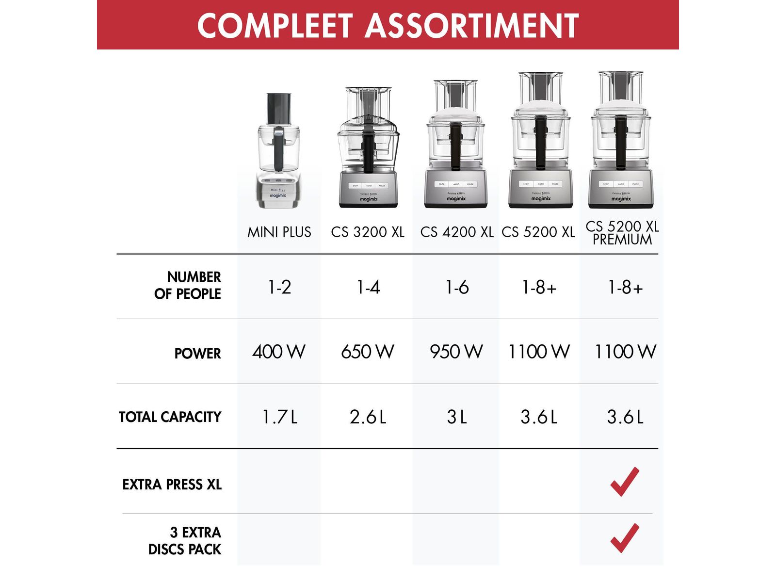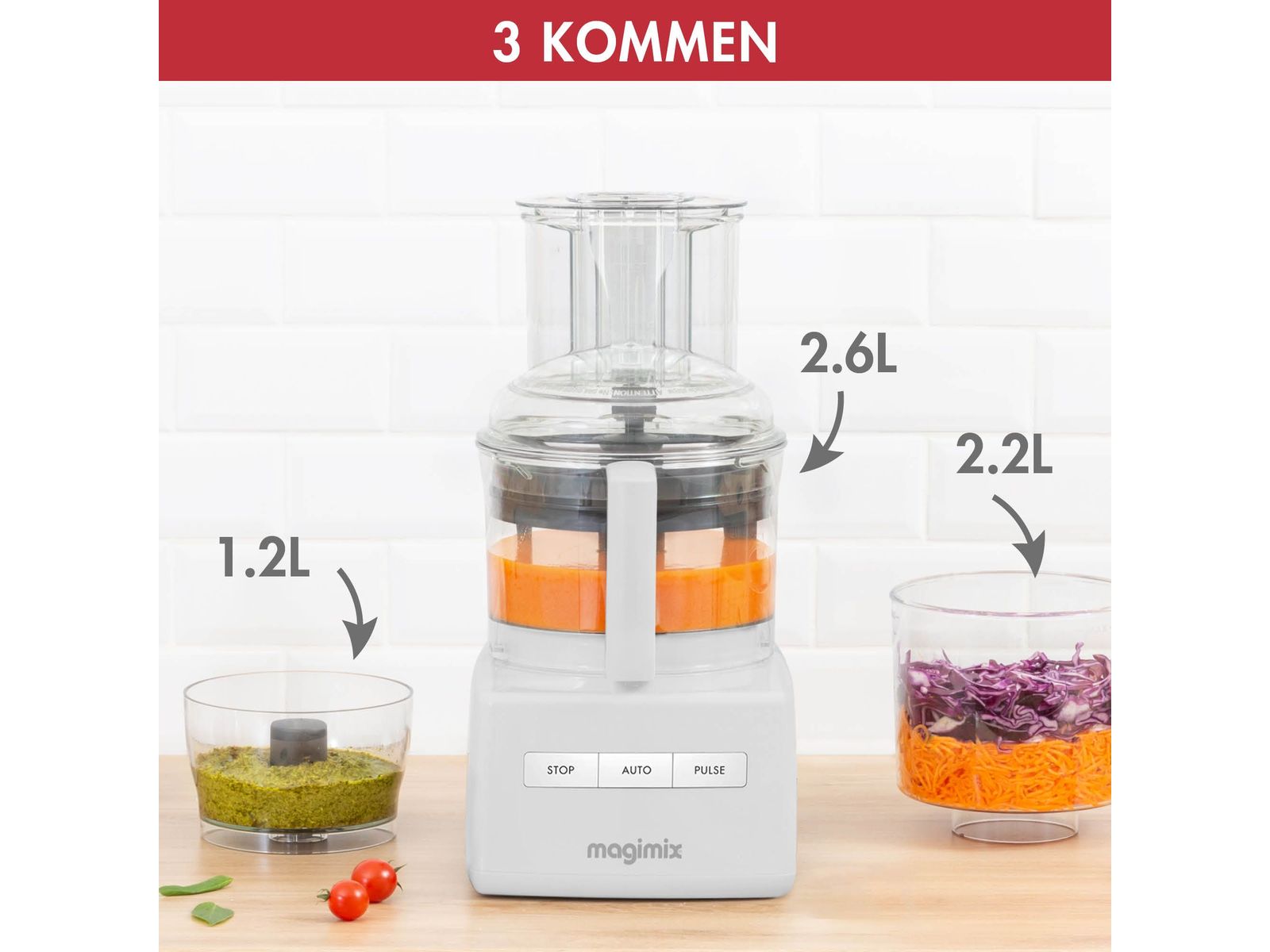 Met de Compact 3200 XL en zijn 3 mengkommen kunt u uw bereidingen achter elkaar uitvoeren en een complete dagelijkse maaltijd voor 4 à 5 personen bereiden.