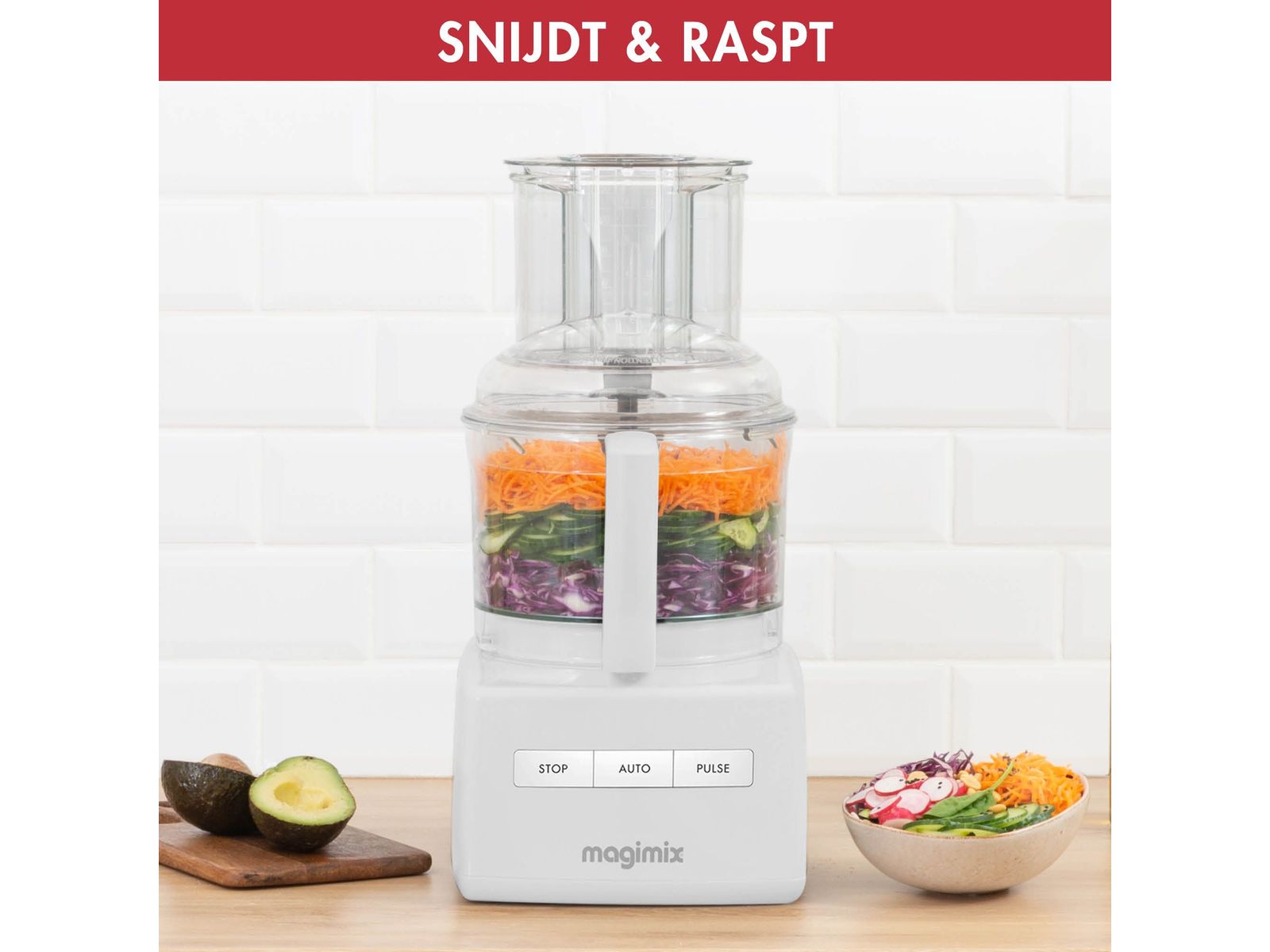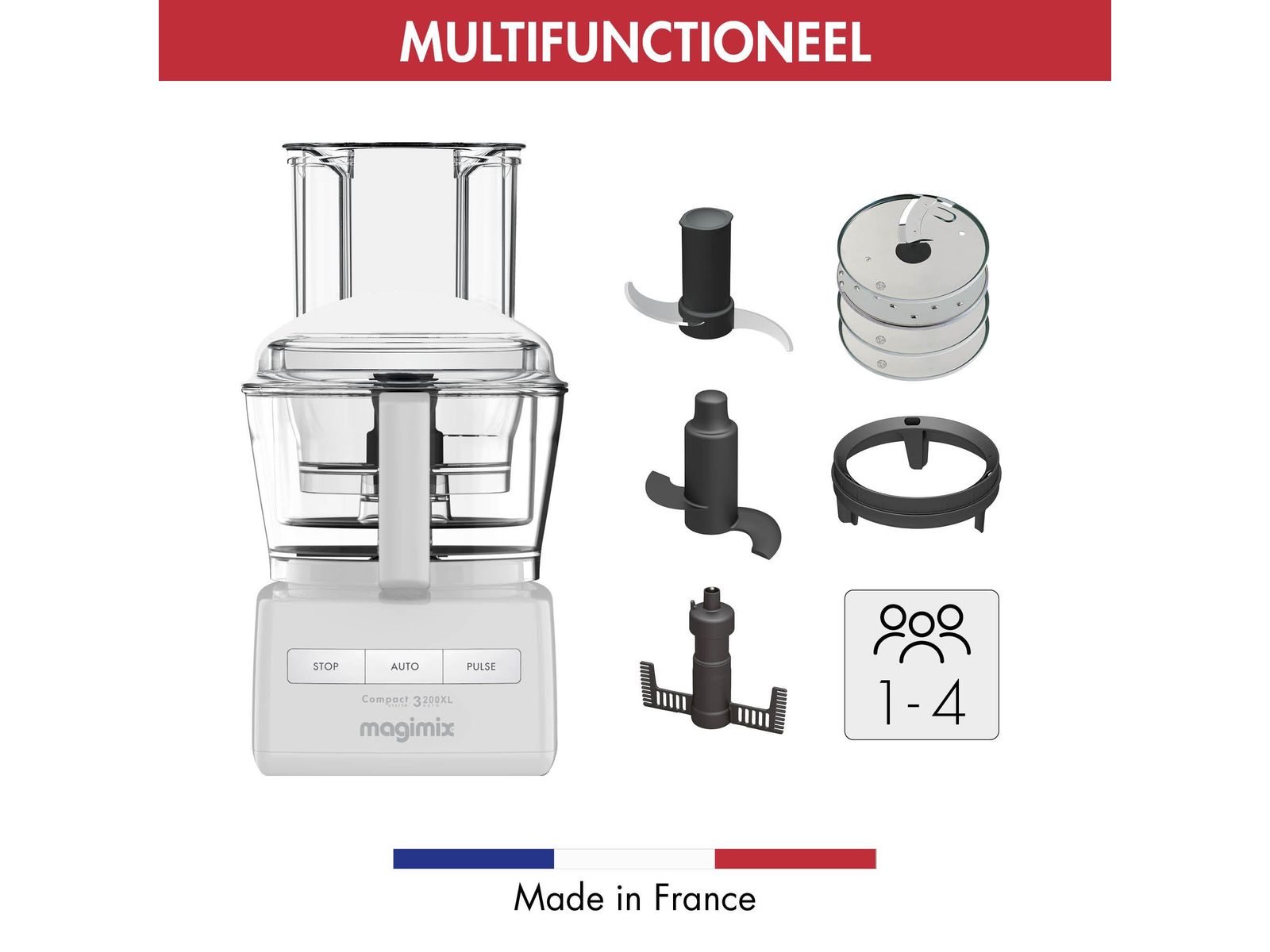 voor hakken, mixen, kneden, raspen, plakjes snijden, emulgeren en kloppen.