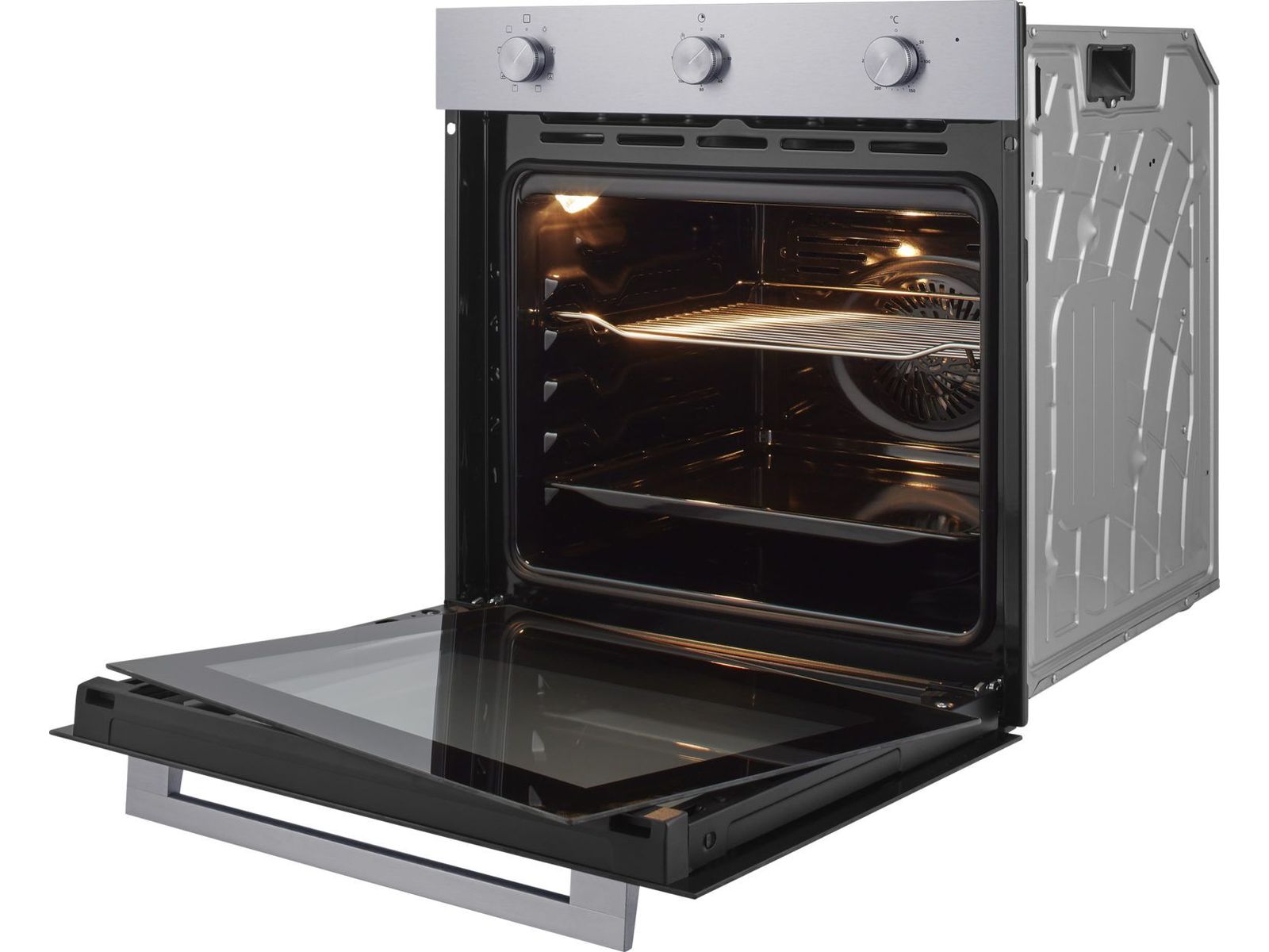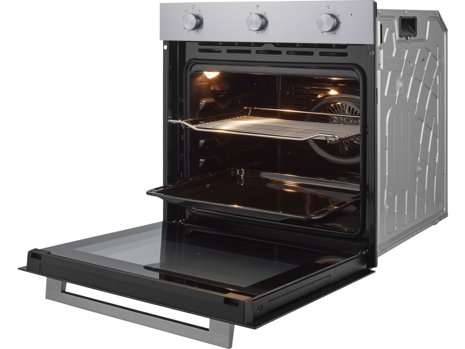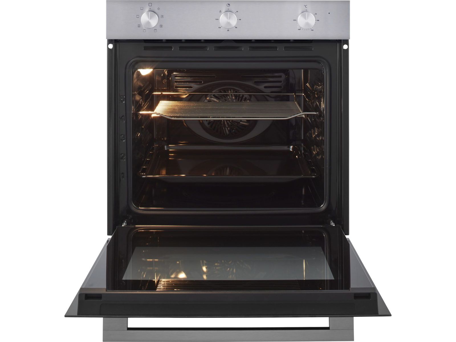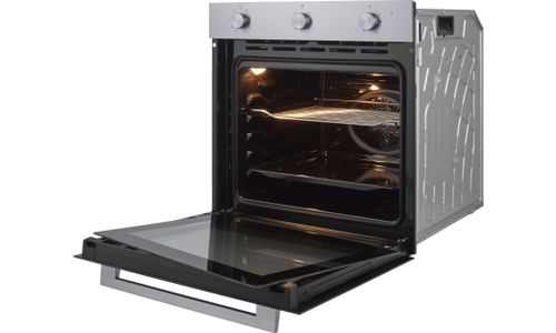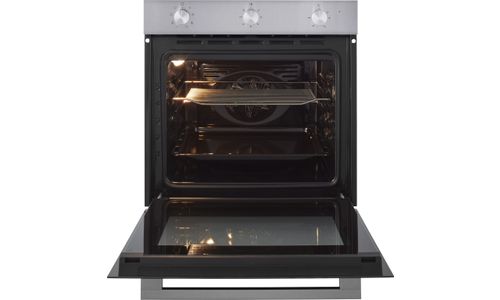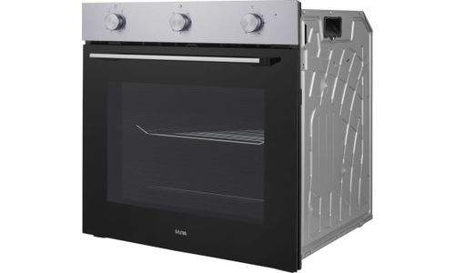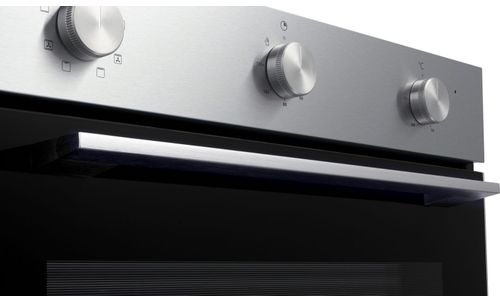 Deze multifunctionele hetelucht oven, geschikt voor een 60 cm nis, is uitgevoerd in RVS. Met drie draaiknoppen is deze oven makkelijk te bedienen.
