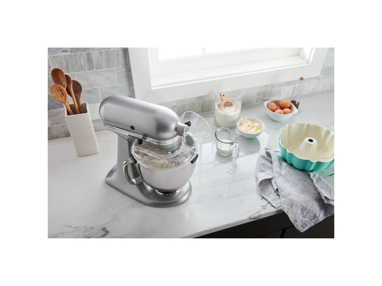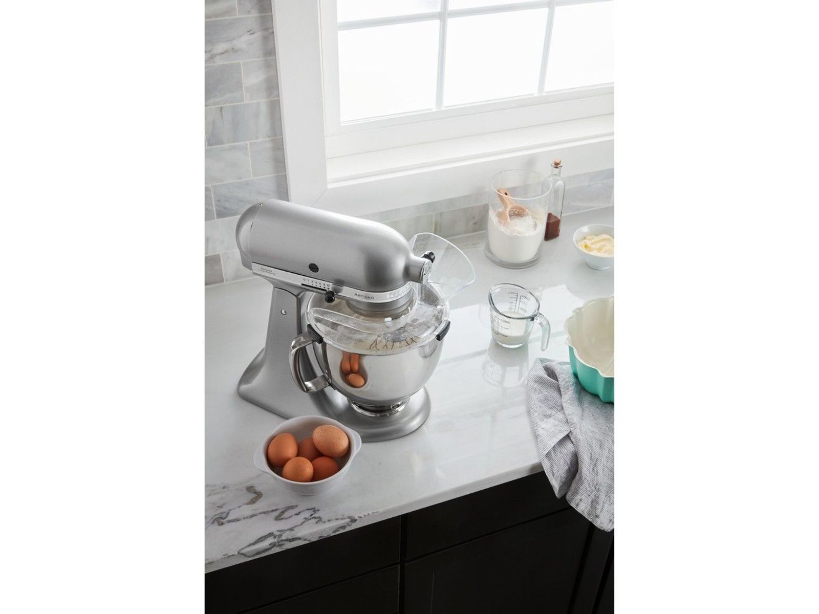 Het stevig passend schenkschild is een handig accessoire voor je 4,3 L of 4,8 L mixer/keukenrobot met kantelbare kop. Het helpt niet alleen spatten te voorkomen, maar stelt je ook in staat ingrediënten gelijkmatig toe te voegen tijdens het mixen. De grote, schuine ingrediëntenopening stelt je in staat om ingrediënten van vele hoeveelheden nauwkeurig en gemakkelijk toe te voegen. Het schenkschild (spatscherm) is gemaakt van doorzichtig plastic zodat je de kom goed kunt zien, met eenvoudige kliklipjes om het stevig op zijn plaats te houden. Je zult je afvragen hoe je het zonder hebt gered. Ontworpen om op de mengkommen van onze 4,3 L en 4,8 L mixers/keukenrobots met kantelbare kop te plaatsen, maar niet compatibel met glazen kommen.