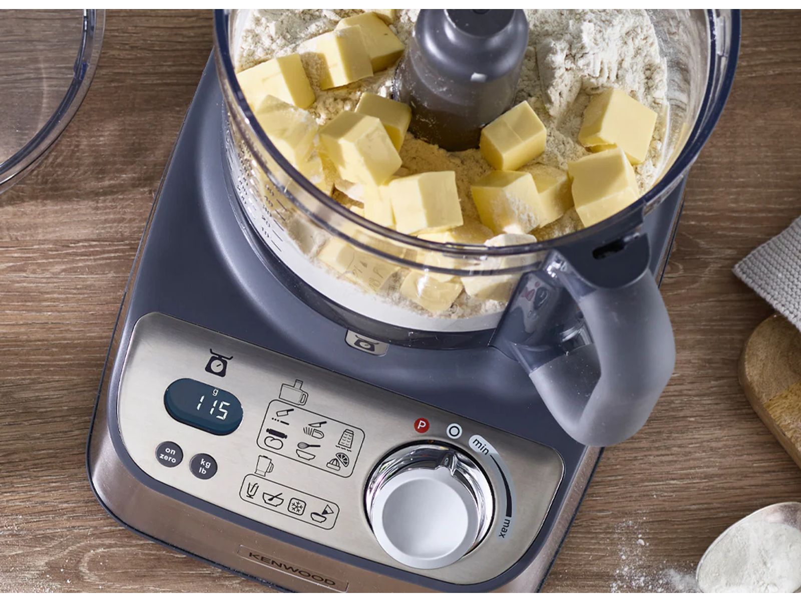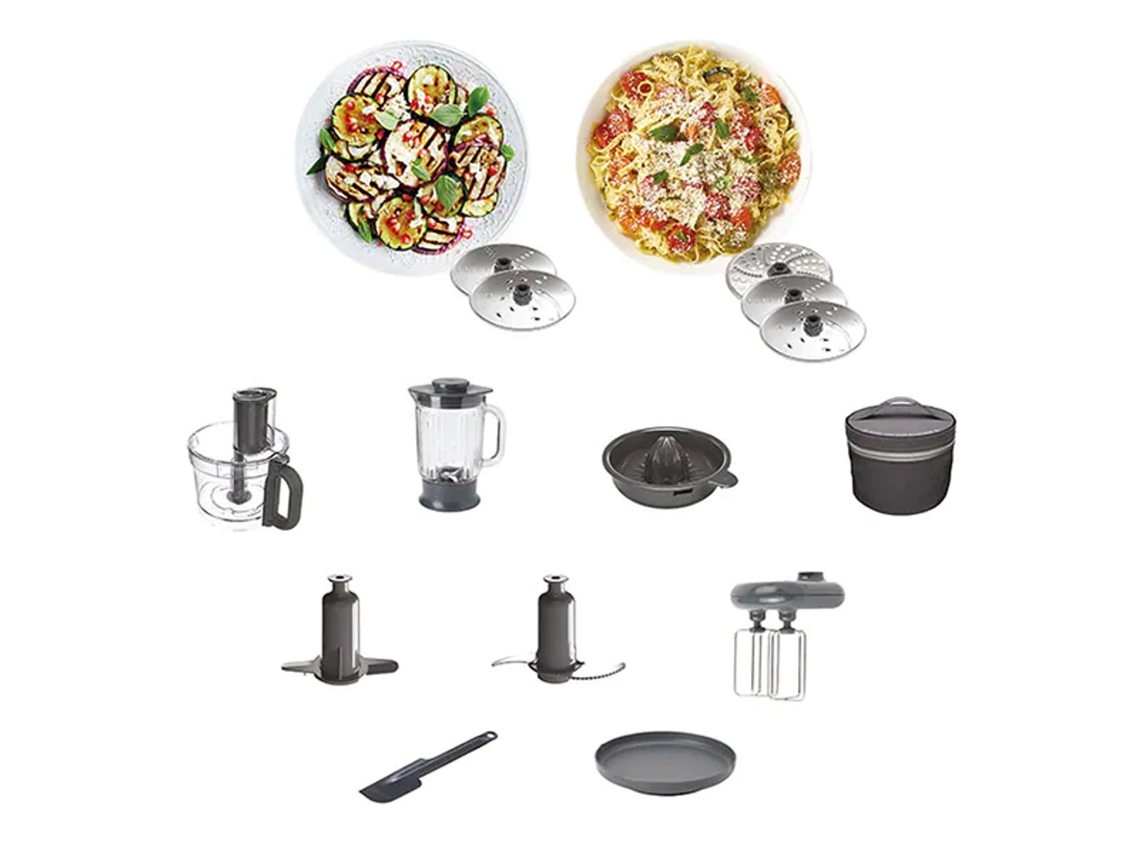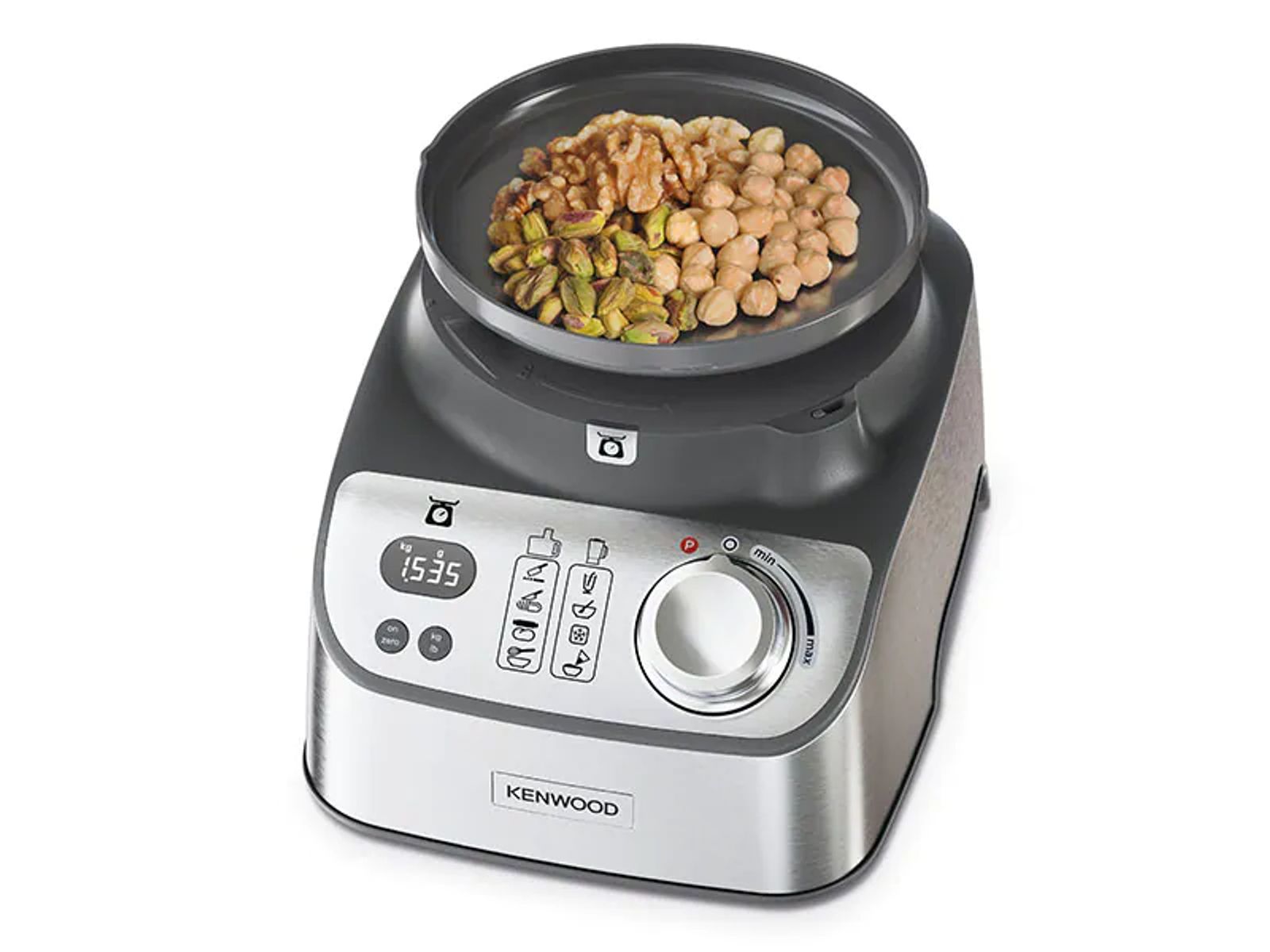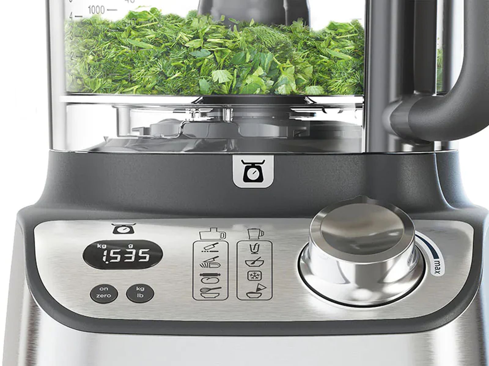 Vergeet aparte weegschalen. Weeg groenten, bloem en meer rechtstreeks in de kom of op het meegeleverde weegplateau. Stapsgewijs of individueel. U bespaart tijd en afwas. En zonder batterijen die kunnen leeglopen, is het ook betrouwbaarder.