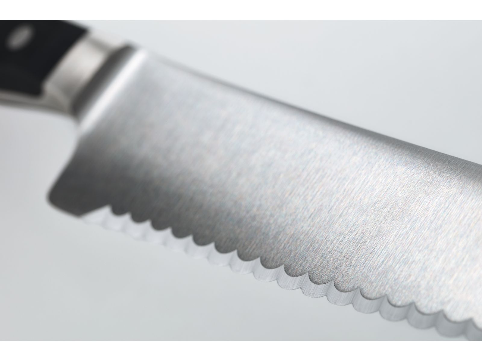 Ideaal voor het snijden van schone plakken van zoveel mogelijk verschillende ingrediënten: voor grote vruchten en groenten, vlees of een gladde snede door taarten, koek en brood, de naar buiten gebogen, gekartelde rand van het super slicer maakt zeer fijne sneden en voorkomt dat de producten scheuren of afbrokkelen.