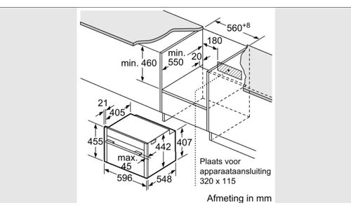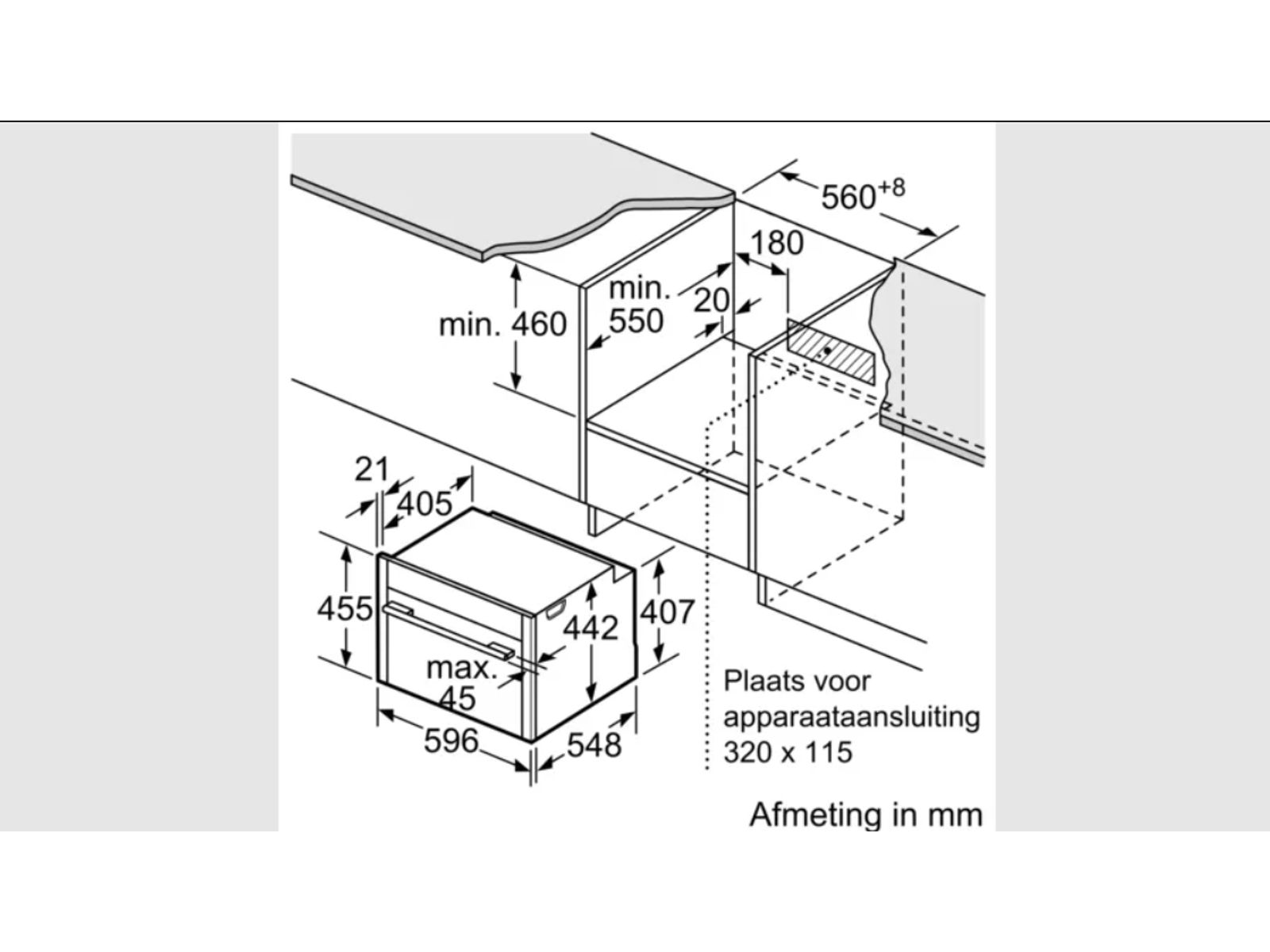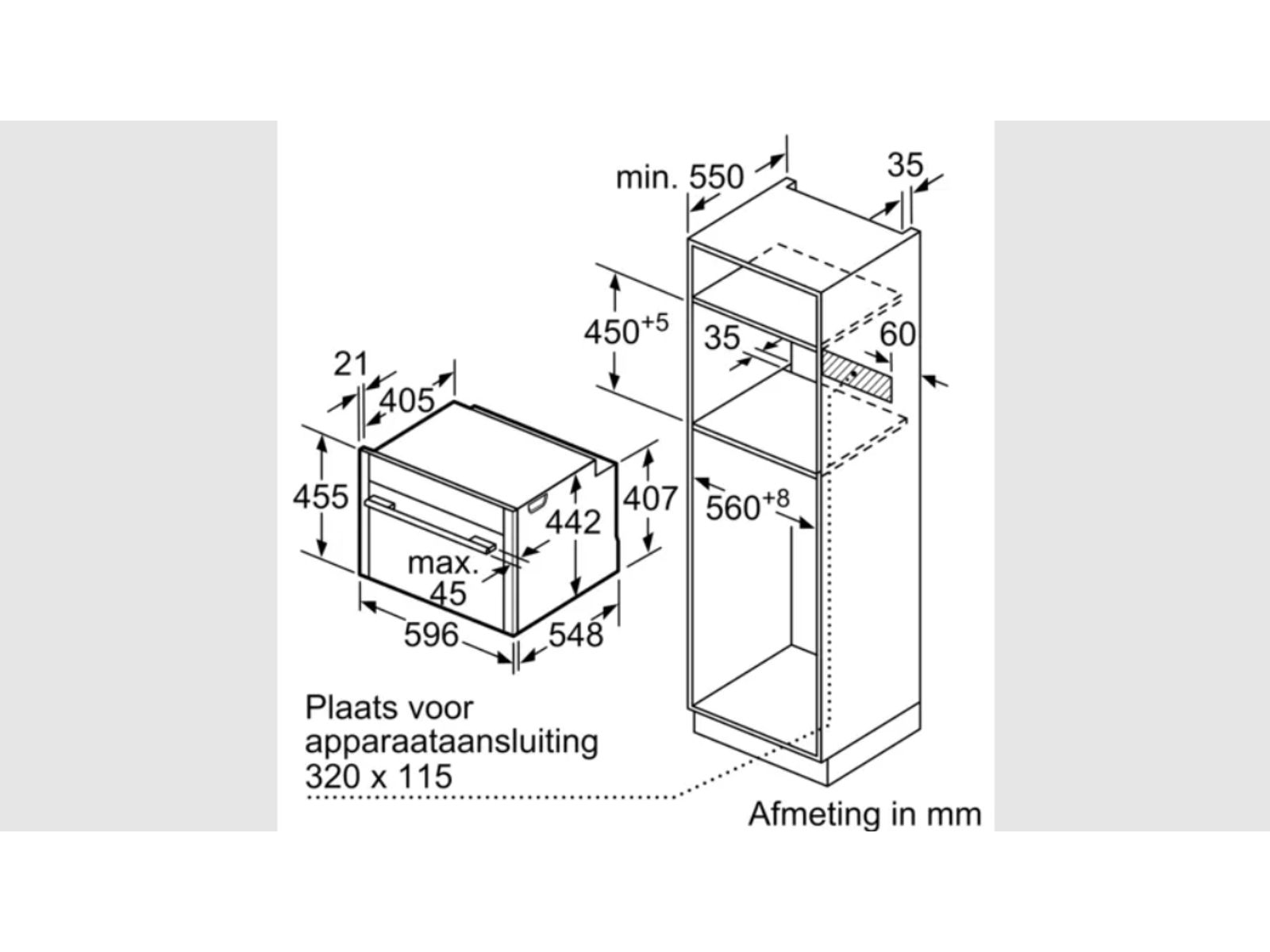 ++ Nishoogte (minimaal): 45 cm ++ Inhoud ovenruimte: 45 Liter ++ Reiniging van de oven: Hydrolyse ++