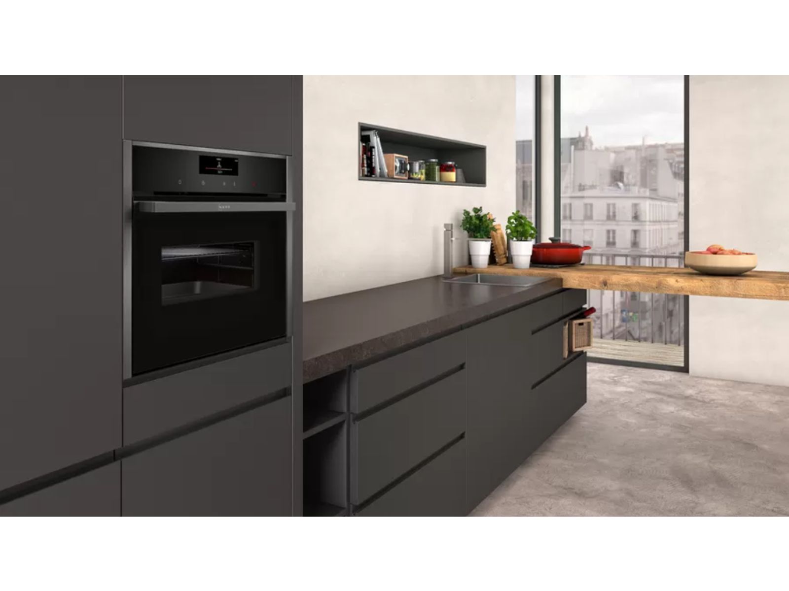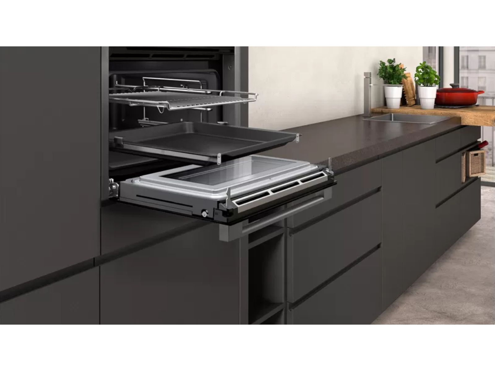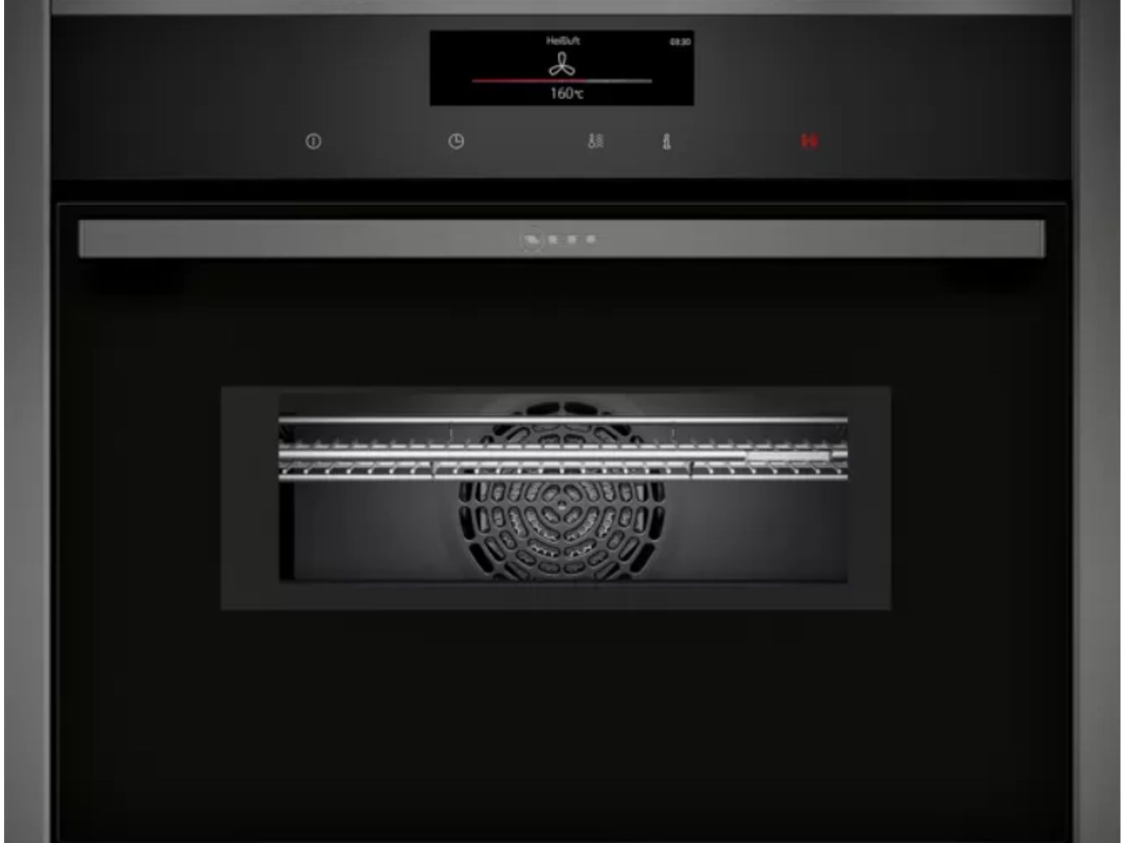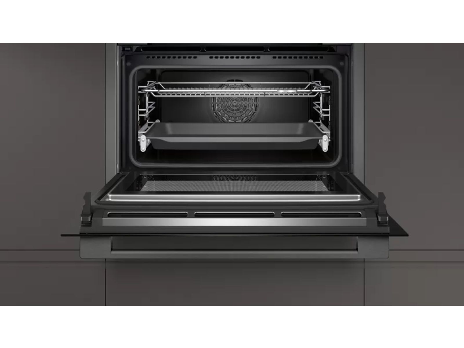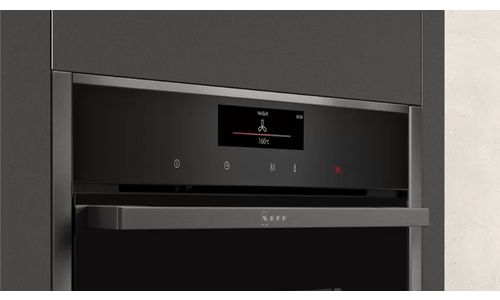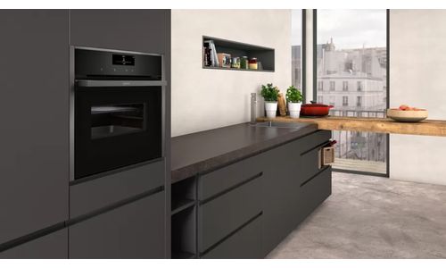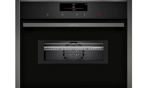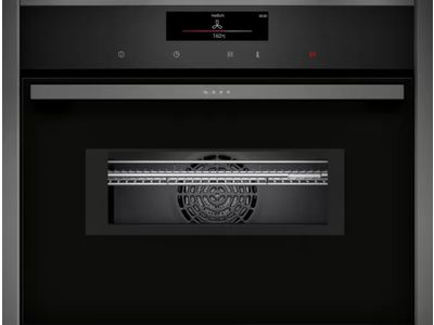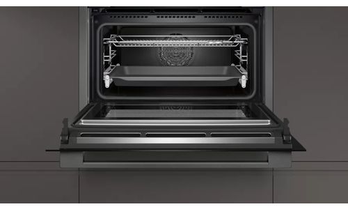 Oven HC - N90 Combi-microgolf 45 cm, 13 verw.wijzen, 900W, Pyrolyse, Bake&RoastAssist, 14 auto progr., thermometer, tel.rails 1niv., LED-verl. Zwart