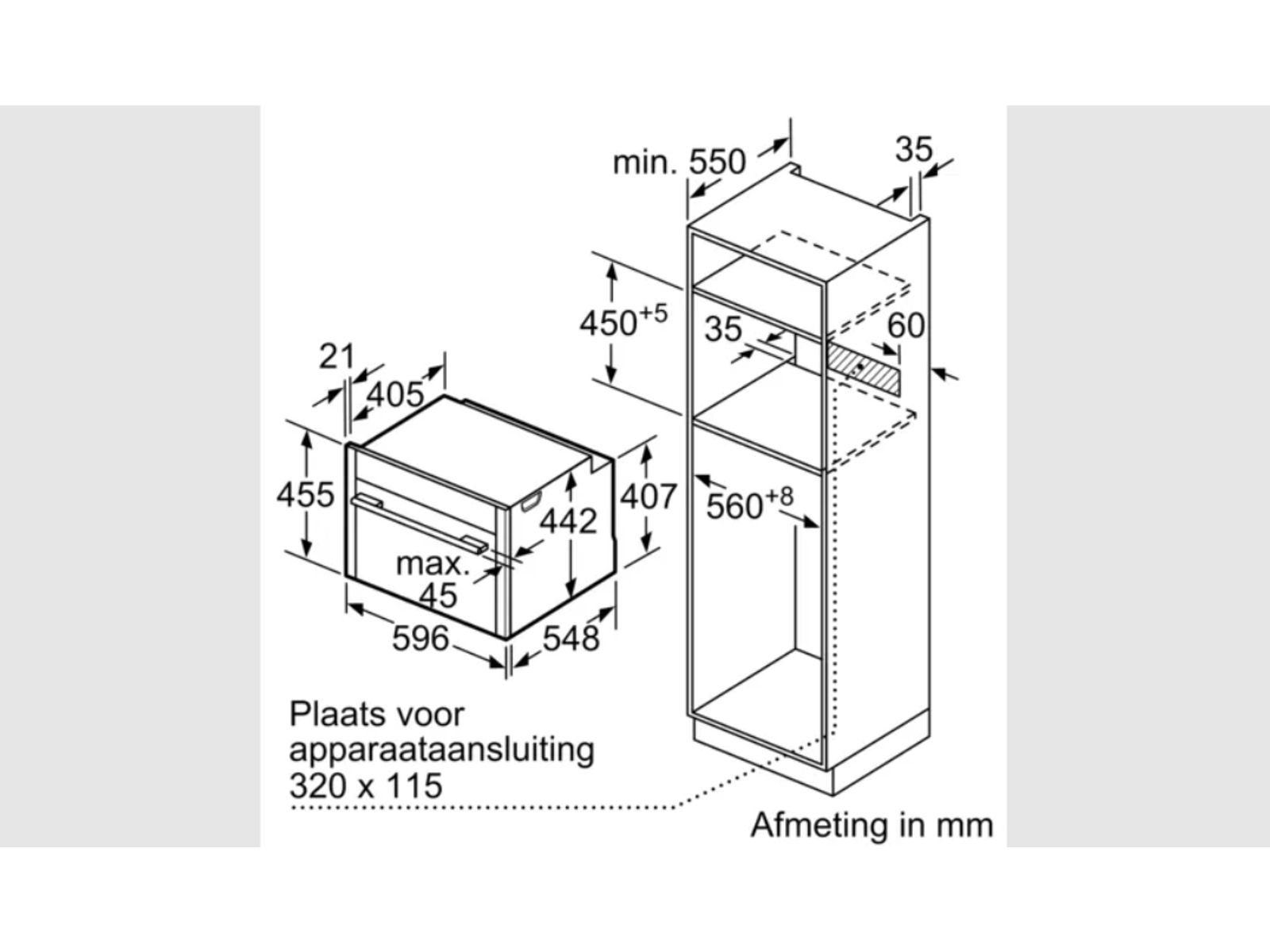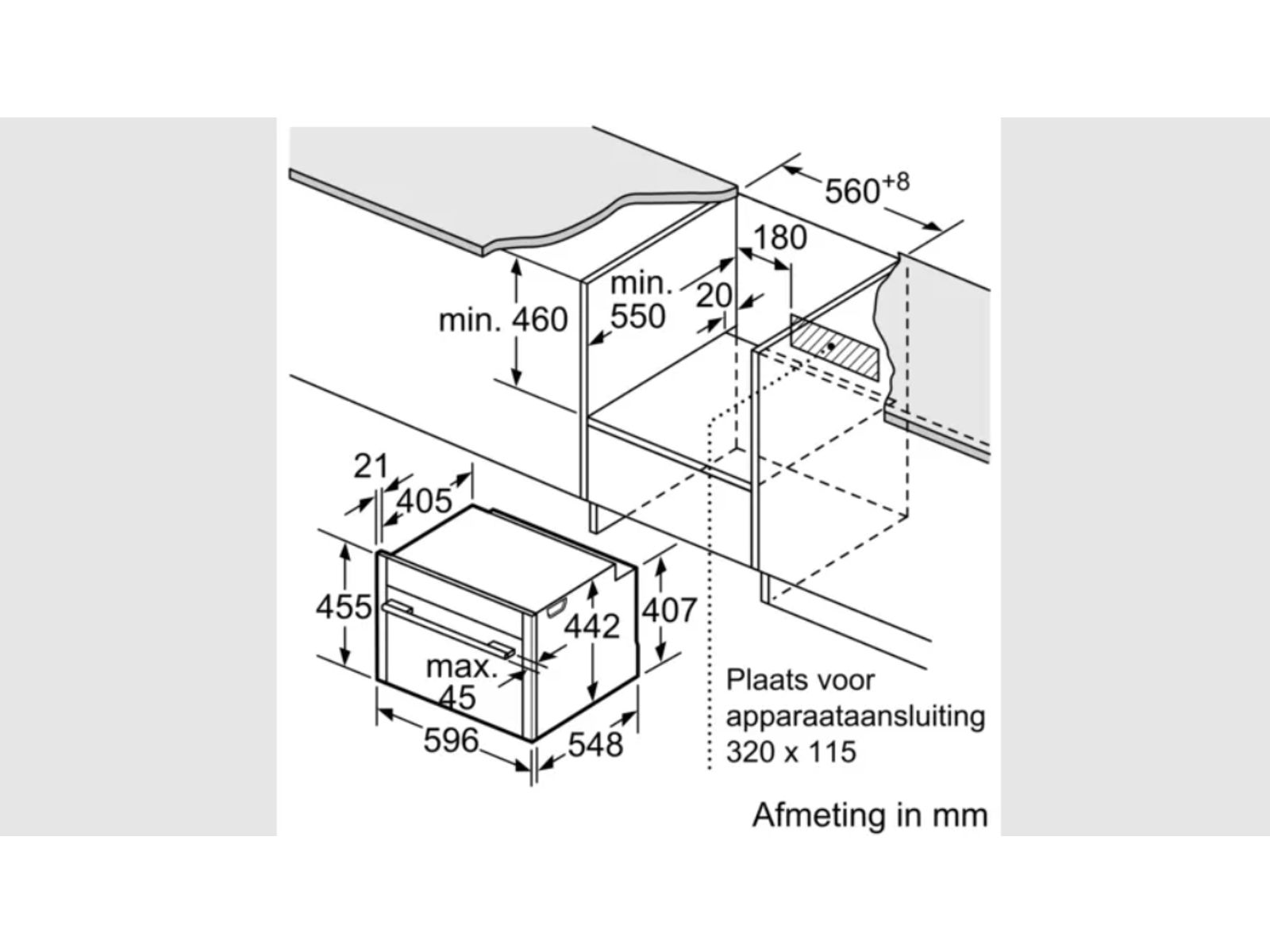 ++ Nishoogte (minimaal): 45 cm ++ Inhoud ovenruimte: 47 Liter ++ Reiniging van de oven: Hydrolyse, Katalyse ++
