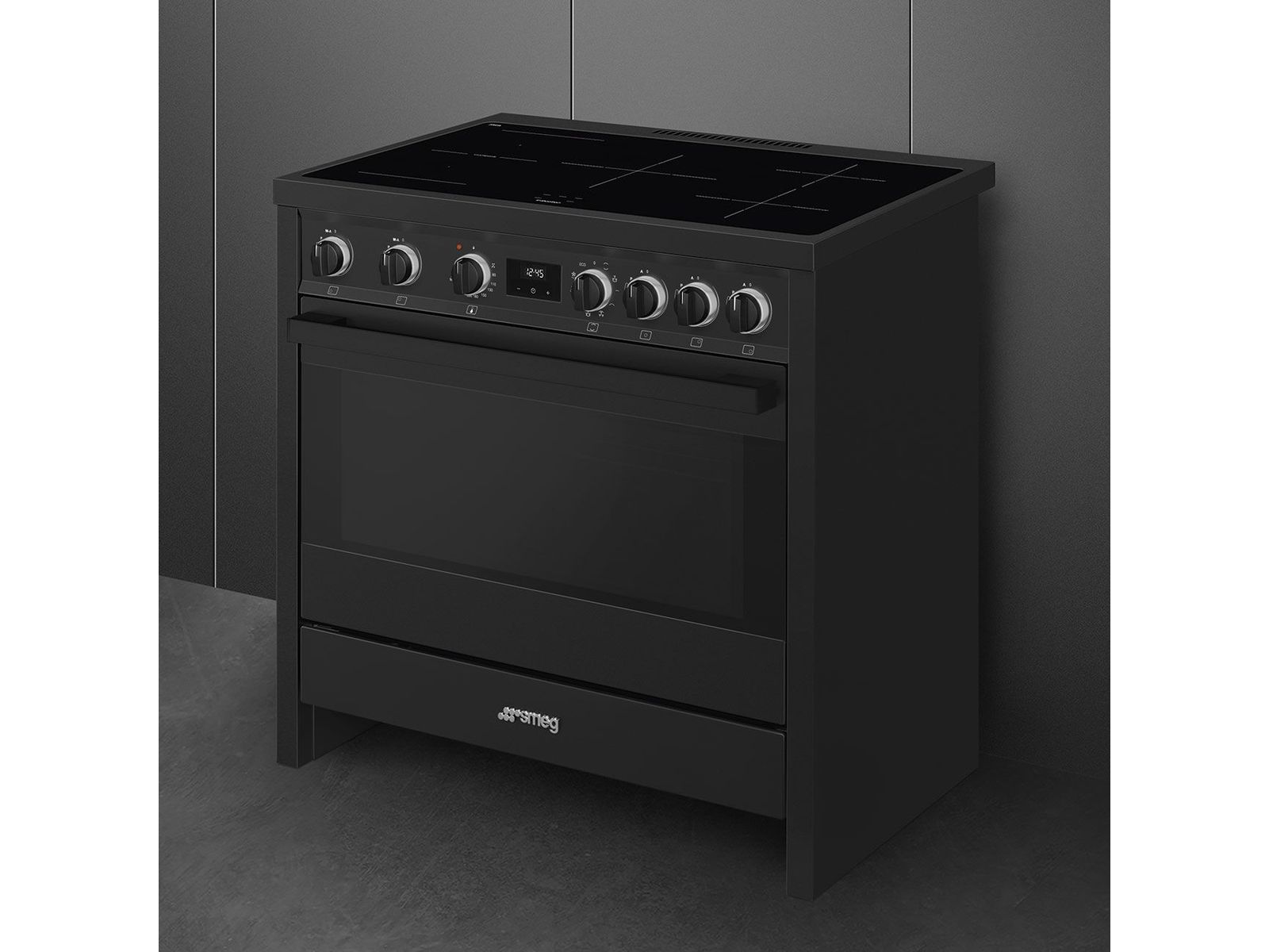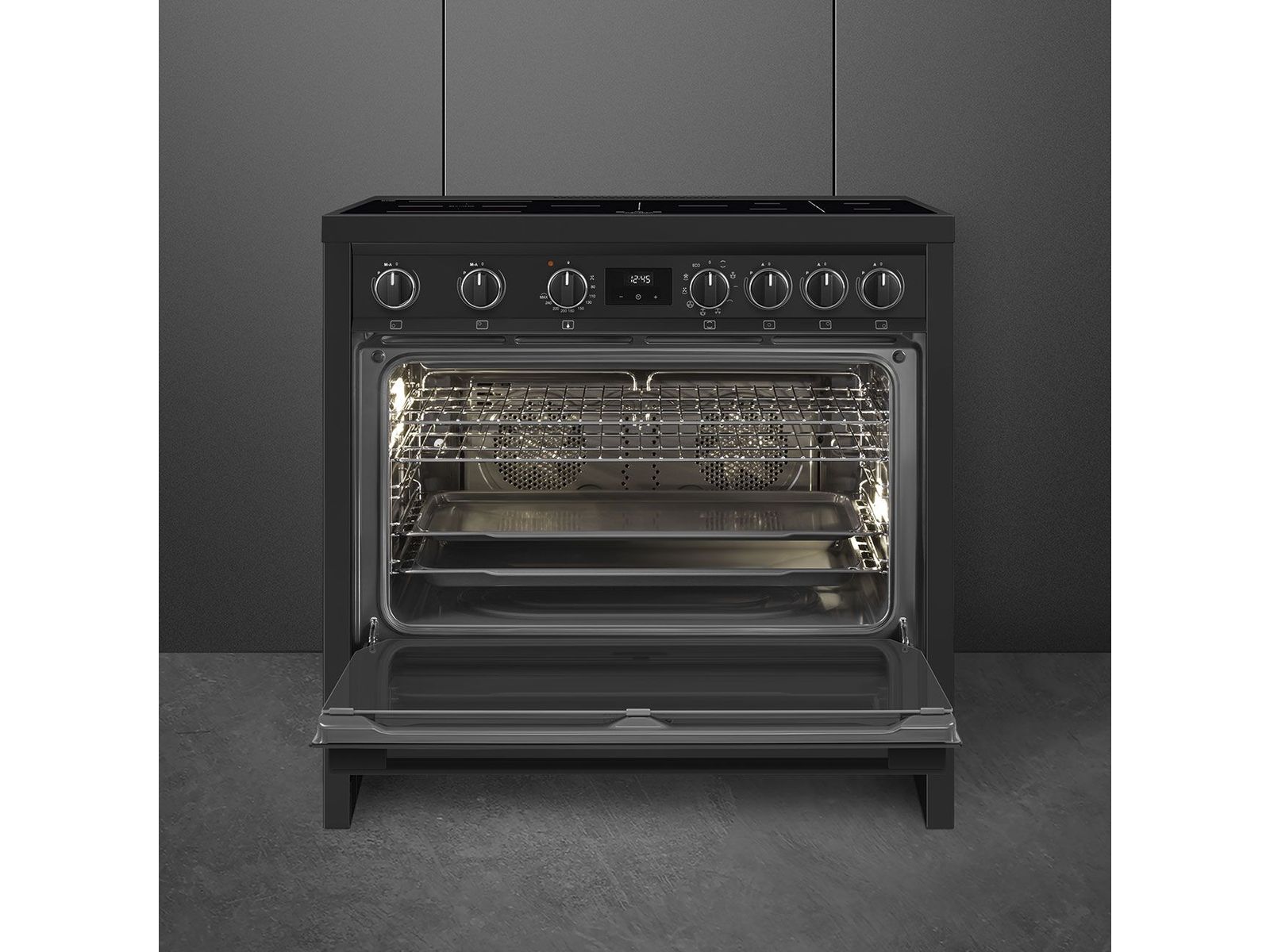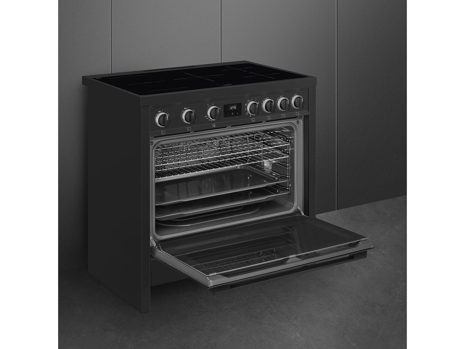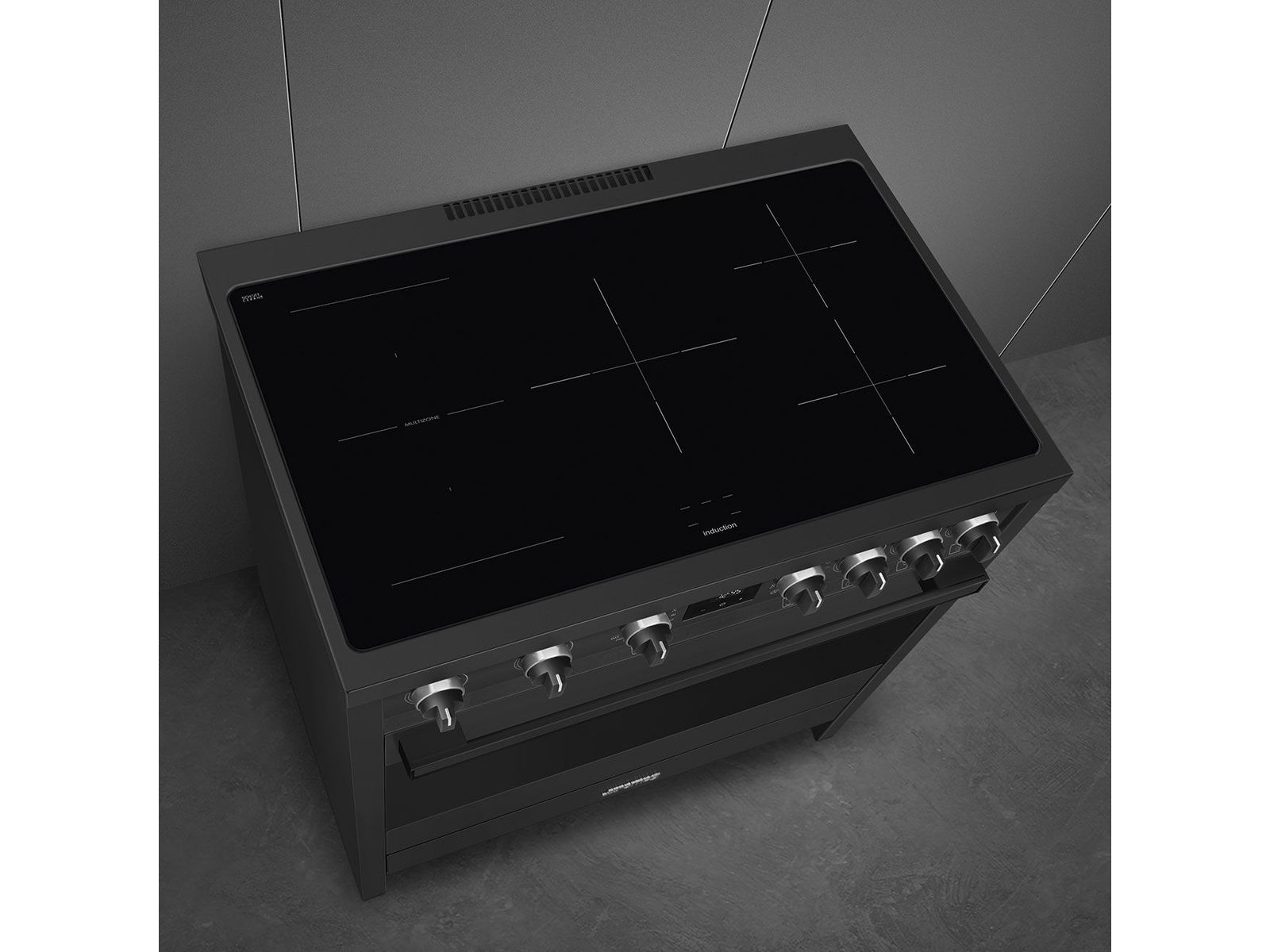 Fornuis 90 x 60 x 90 - 5 inductiezones waarvan 1 multizone - 1 oven - energieklasse A - vapor clean reiniging - antraciet