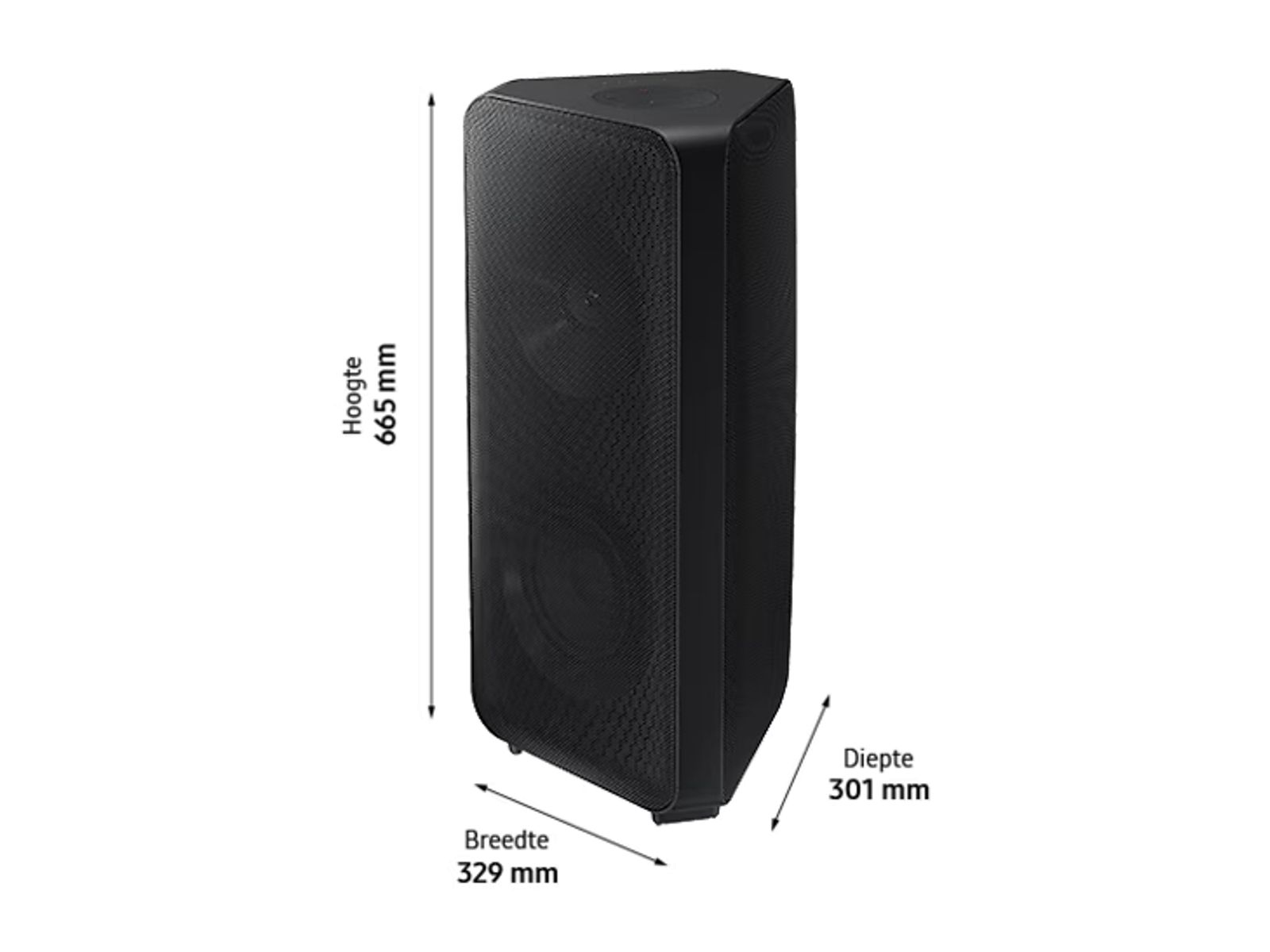 * De Samsung Sound Tower app is compatibel met mobiele apparaten met Android OS 6.0 of hoger. * De Samsung Sound Tower App is compatibel met mobiele apparaten met iOS 10.0 of hoger. * Specificaties met betrekking tot het uiterlijk, ontwerp en de GUI (Graphic User Interface) die geen invloed hebben op de prestaties van het product, kunnen gewijzigd worden zonder voorafgaande kennisgeving.