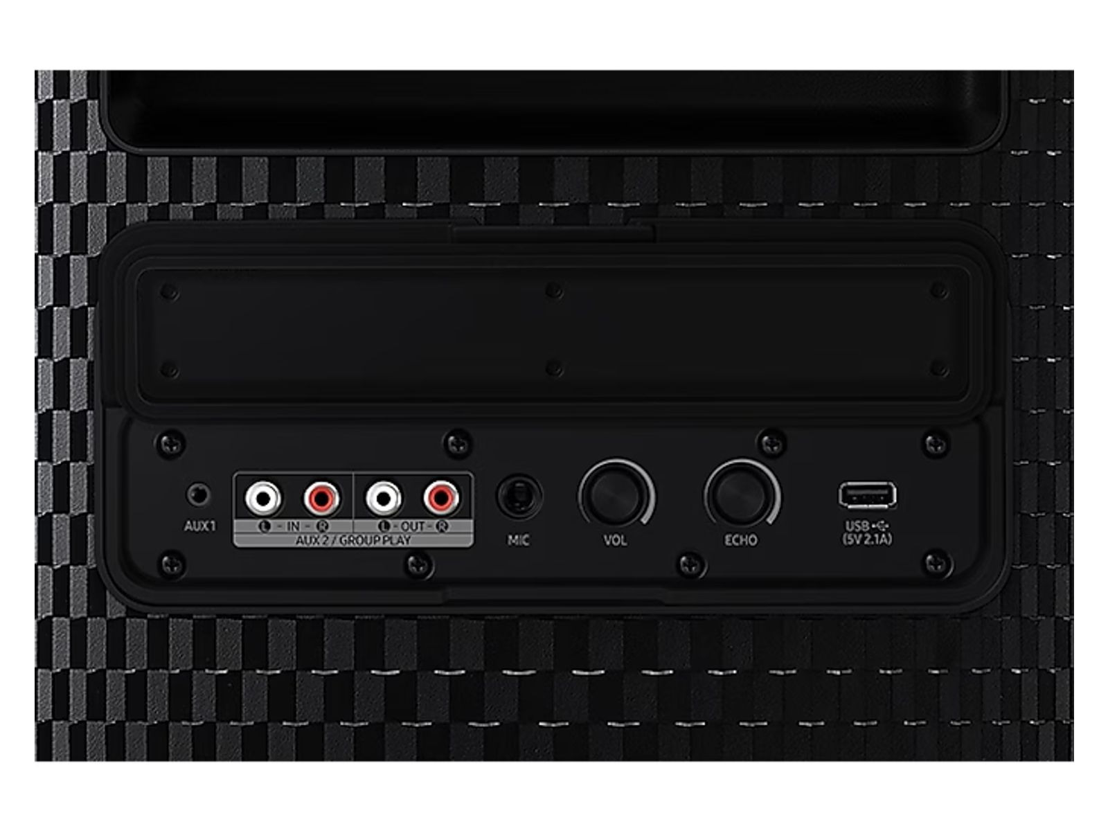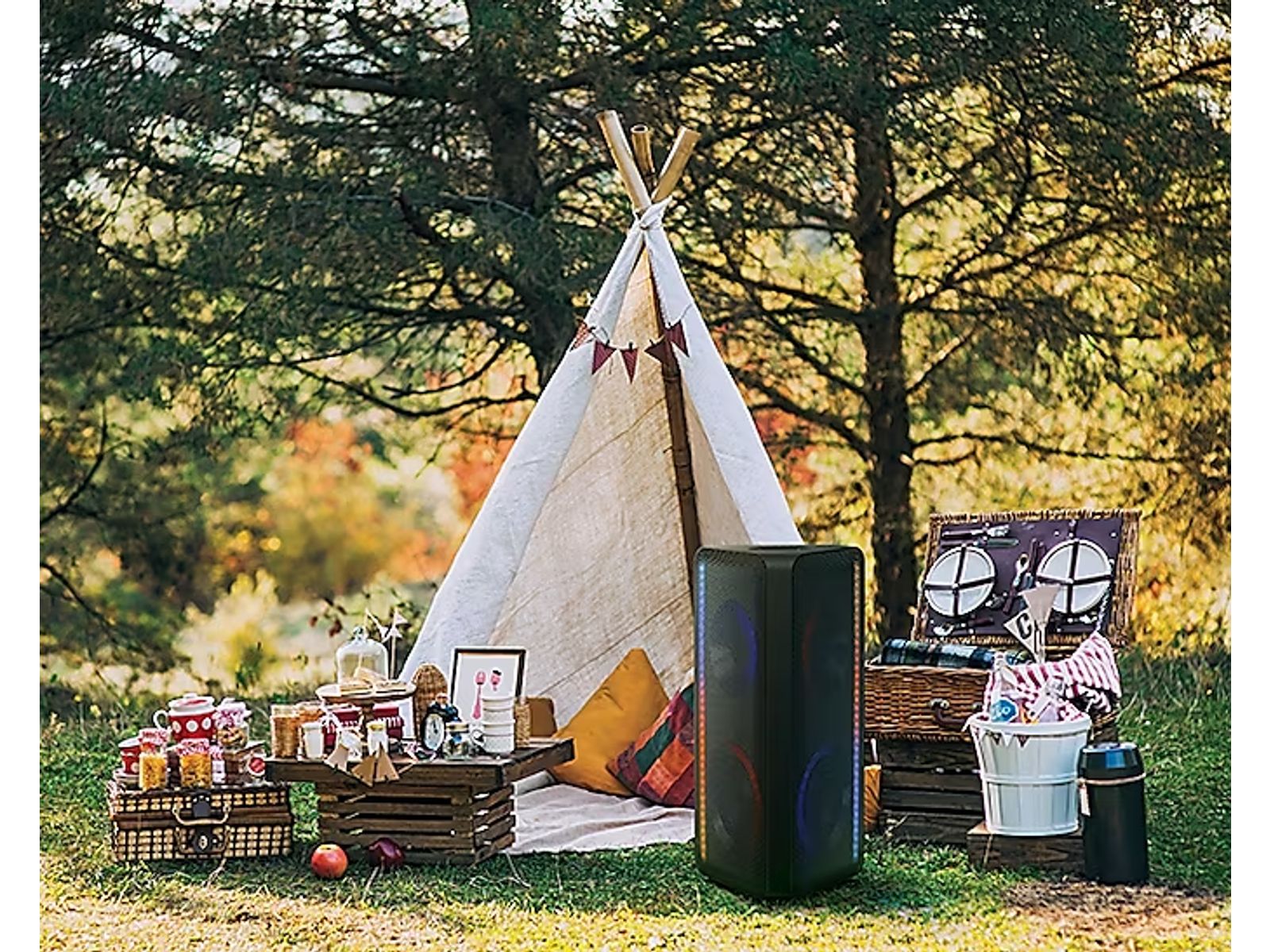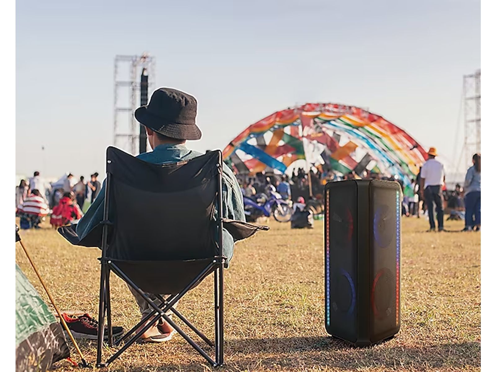 Samsung Sound Tower biedt verschillende leuke lichtmodi, zoals Party, Ambient, Dance, Thunder Bolt, Star —en met behulp van de speciale app op je mobiele telefoon kun je de effecten eenvoudig aanpassen. Stem de lichteffecten af op het ritme en ga de dansvloer op!