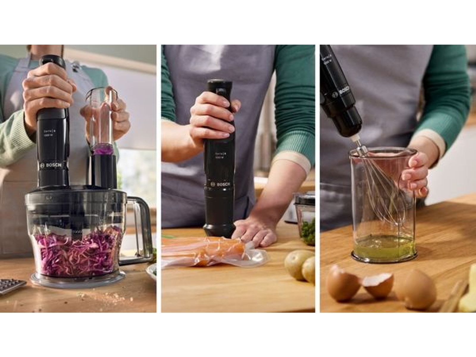Voor perfecte resultaten. De ErgoMaster met krachtige motor maakt mengen, hakken en opkloppen nog eenvoudiger dankzij de meegeleverde accessoires. Soep, sauzen, noten of groenten, zelfs de moeilijkste ingrediënten worden moeiteloos en in een handomdraai bereid.