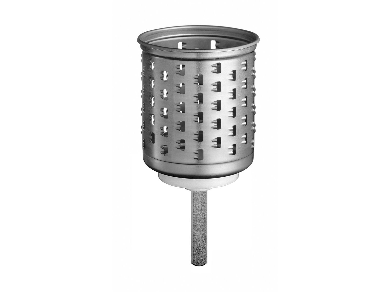 Geschikt voor het schaven en raspen van rauwe wortel - en bladgroenten, aardappelen, uien, allerlei soorten fruit, noten chocoladerepen en kaas. Bestaat uit een schaaftrommel, een middelgrove rasptrommel en een grove rasptrommel. De trommels zijn gemaakt van roestvrij staal.