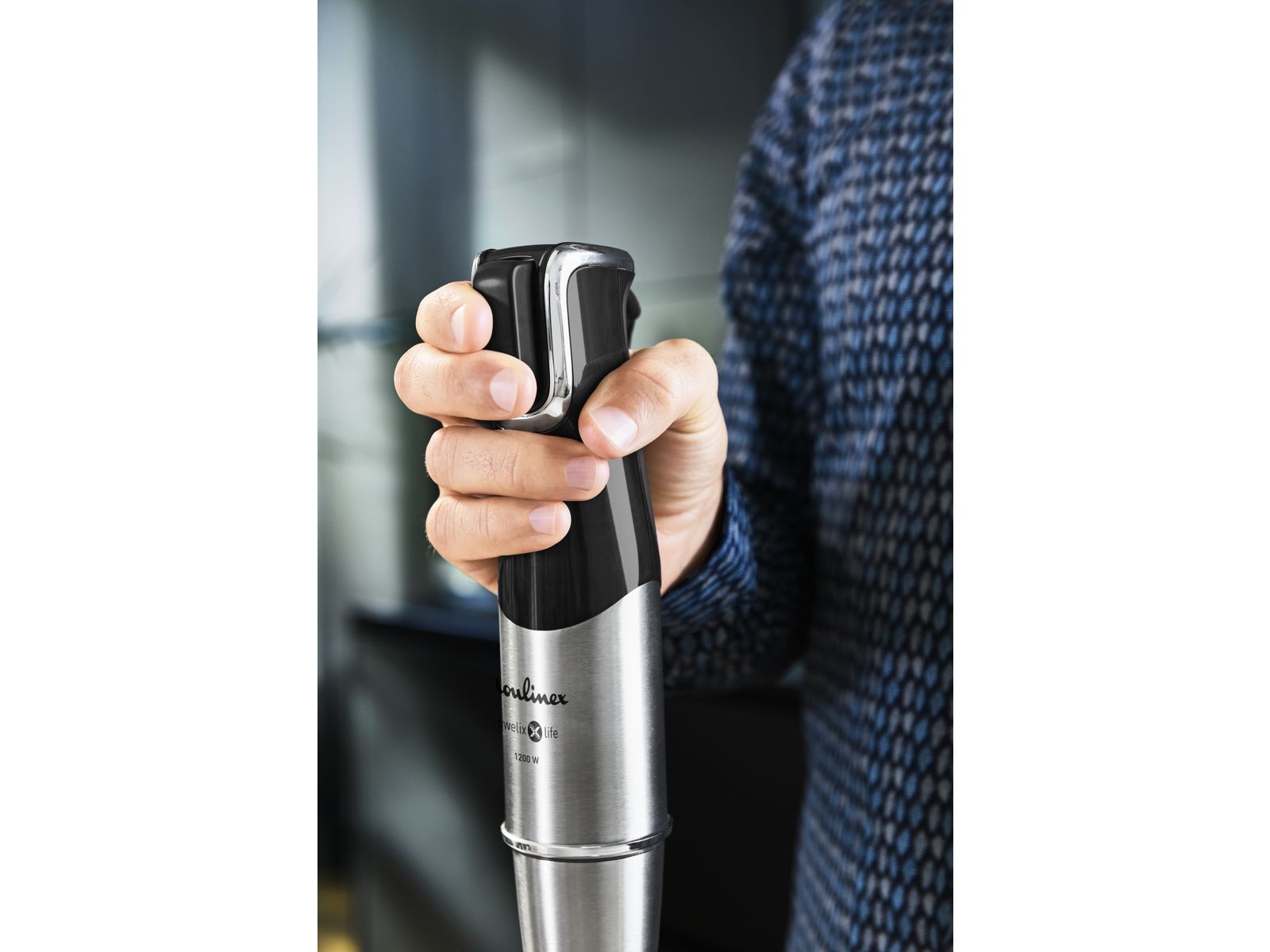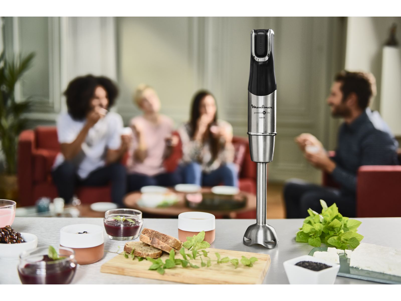 Met de Moulinex InfinyForce Pro Staafmixer gaan uitzonderlijke prestaties gepaard met absolute precisie. De Powelix Life technologie biedt sterke messen, voorzien van een titanium coating, voor perfecte resultaten en een extreme duurzaamheid. De uiterst nauwkeurige bedieningsknop met meerdere snelheden geeft u totale controle over de textuur of het resultaat. Het indrukwekkende vermogen van 1200 W garandeert snelle resultaten, zelfs met de ruwste en hardere ingrediënten. De veelzijdige accessoires die worden meegeleverd zorgen voor een compleet pakket met staafmixer waarmee u uw culinaire creativiteit de vrije loop kunt laten