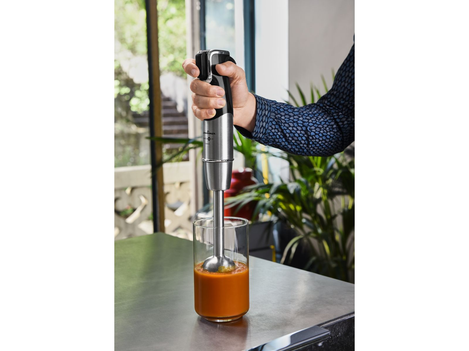Een knop met meerdere snelheden brengt een uitzonderlijke precisie binnen handbereik, met een variabele bediening voor elke textuur of resultaat, en een verbeterde ergonomie voor een staafmixer die nog meer gebruiksgemak biedt.