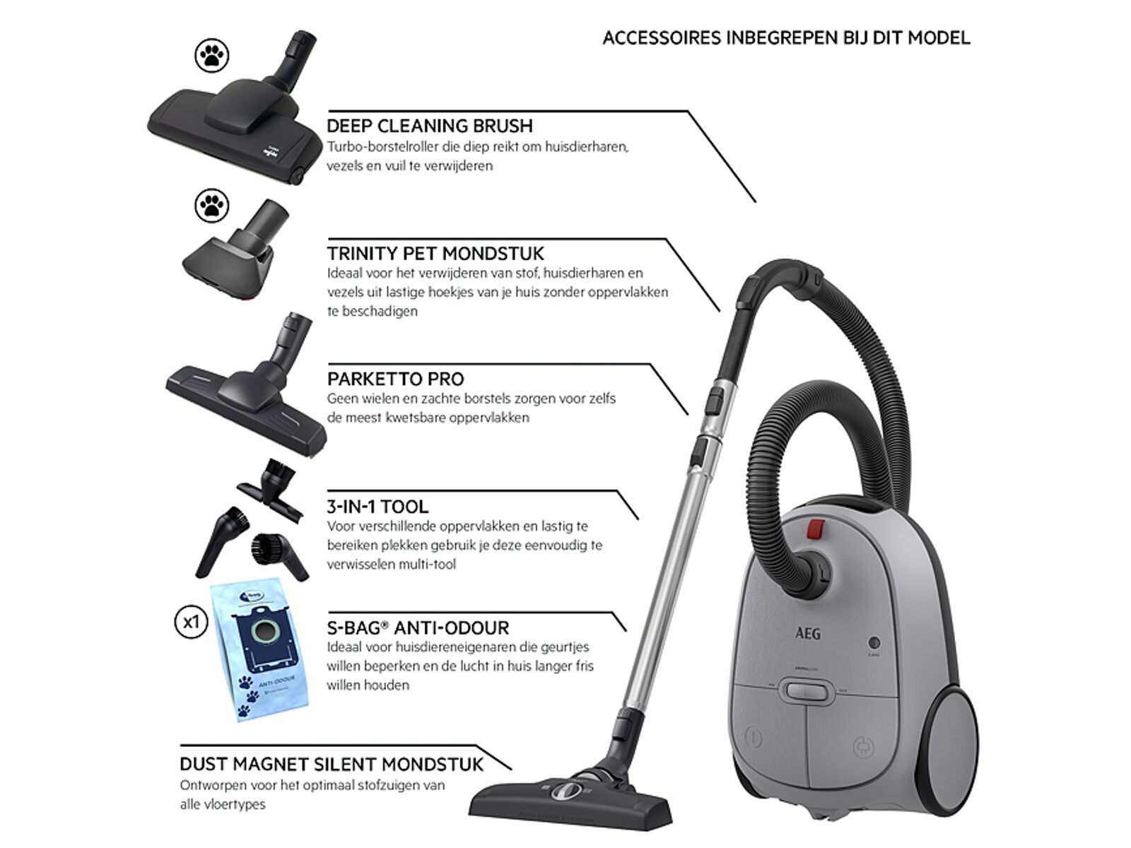 AB61A5UGT 6000 Animal Stofzuiger Met zak - 73 dB - Parketzuigmond - Turbozuigmond