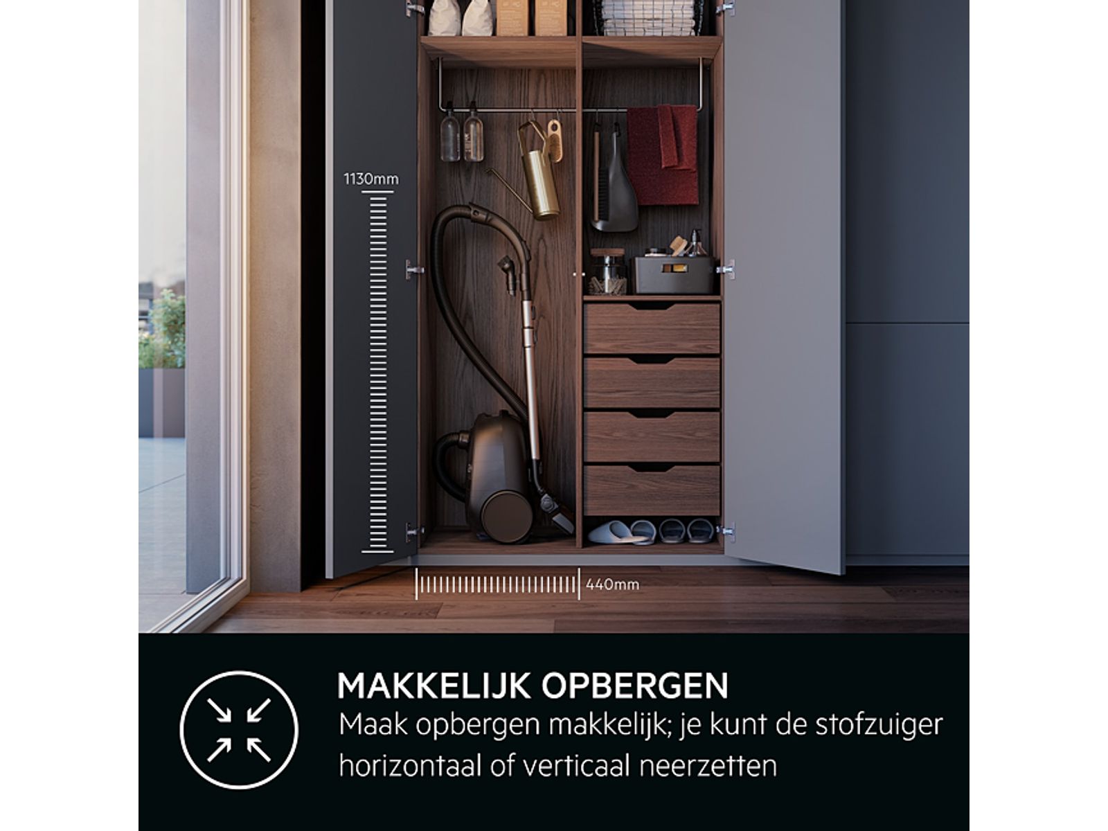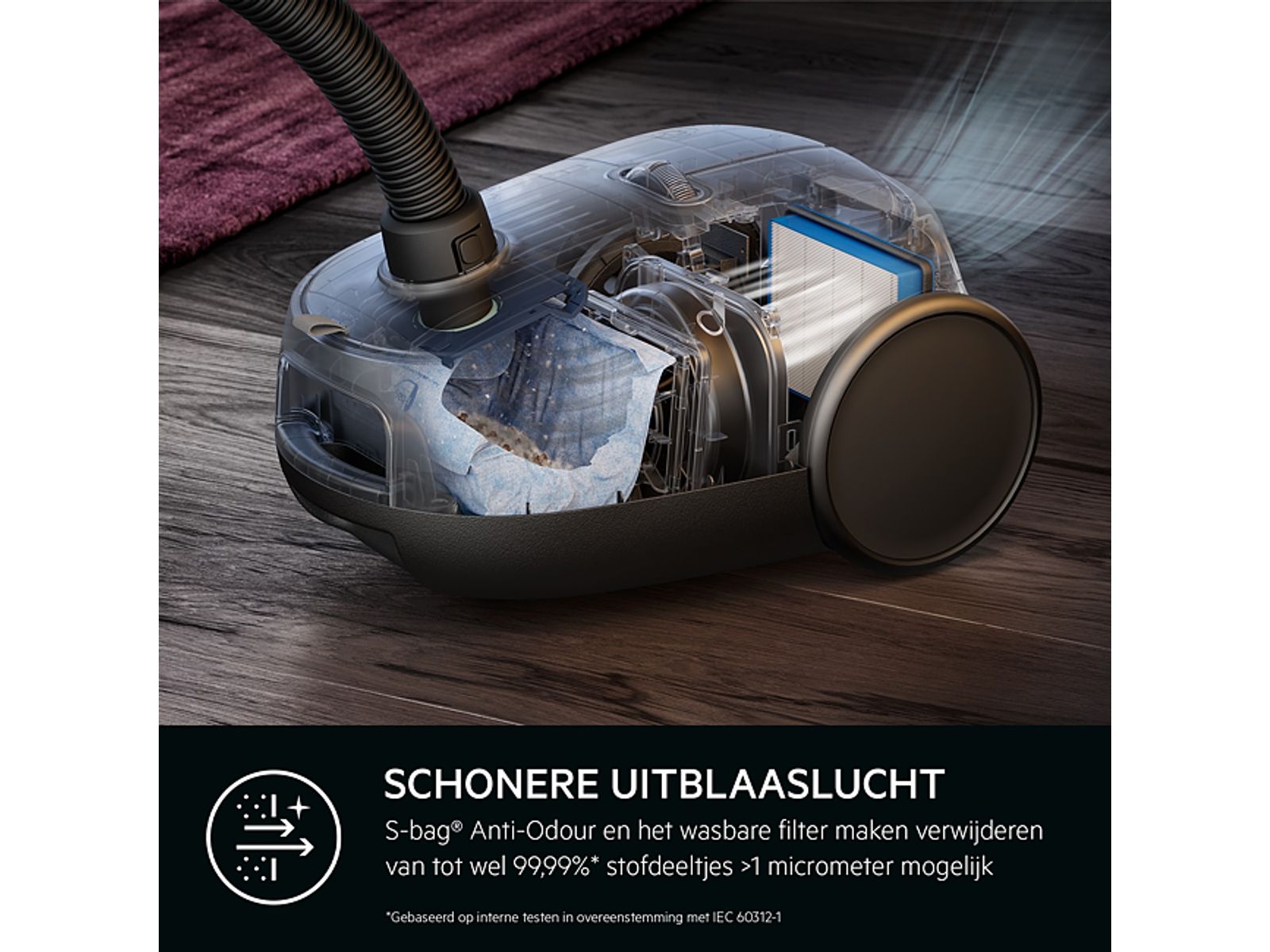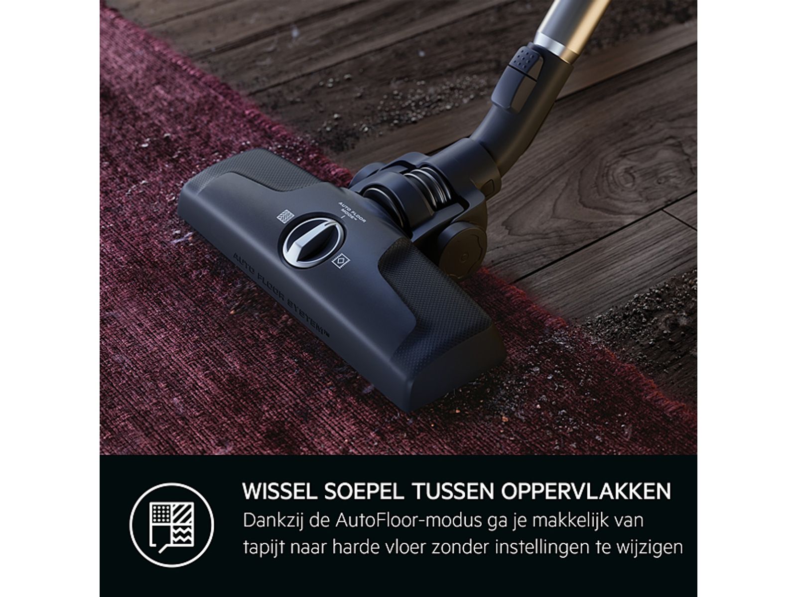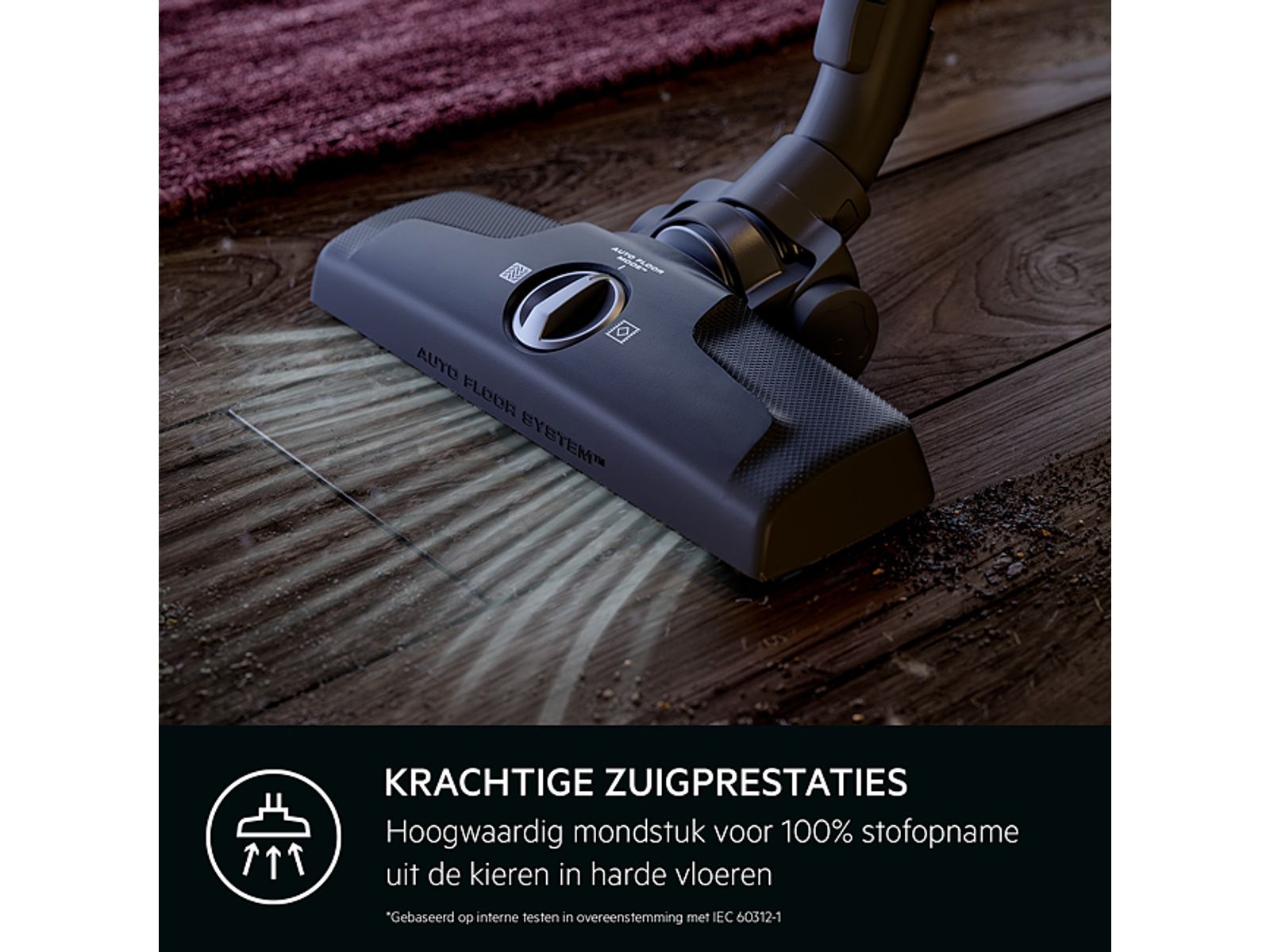 Het design van de Dust Magnet Silent zuigmond garandeert een uitstekende zuigkracht voor fijnstof; 100% stofverwijdering uit kieren. De automatische vloerstand op de zuigmond maakt het zuigen op harde vloeren en tapijt mogelijk zonder handmatig te moeten omschakelen.