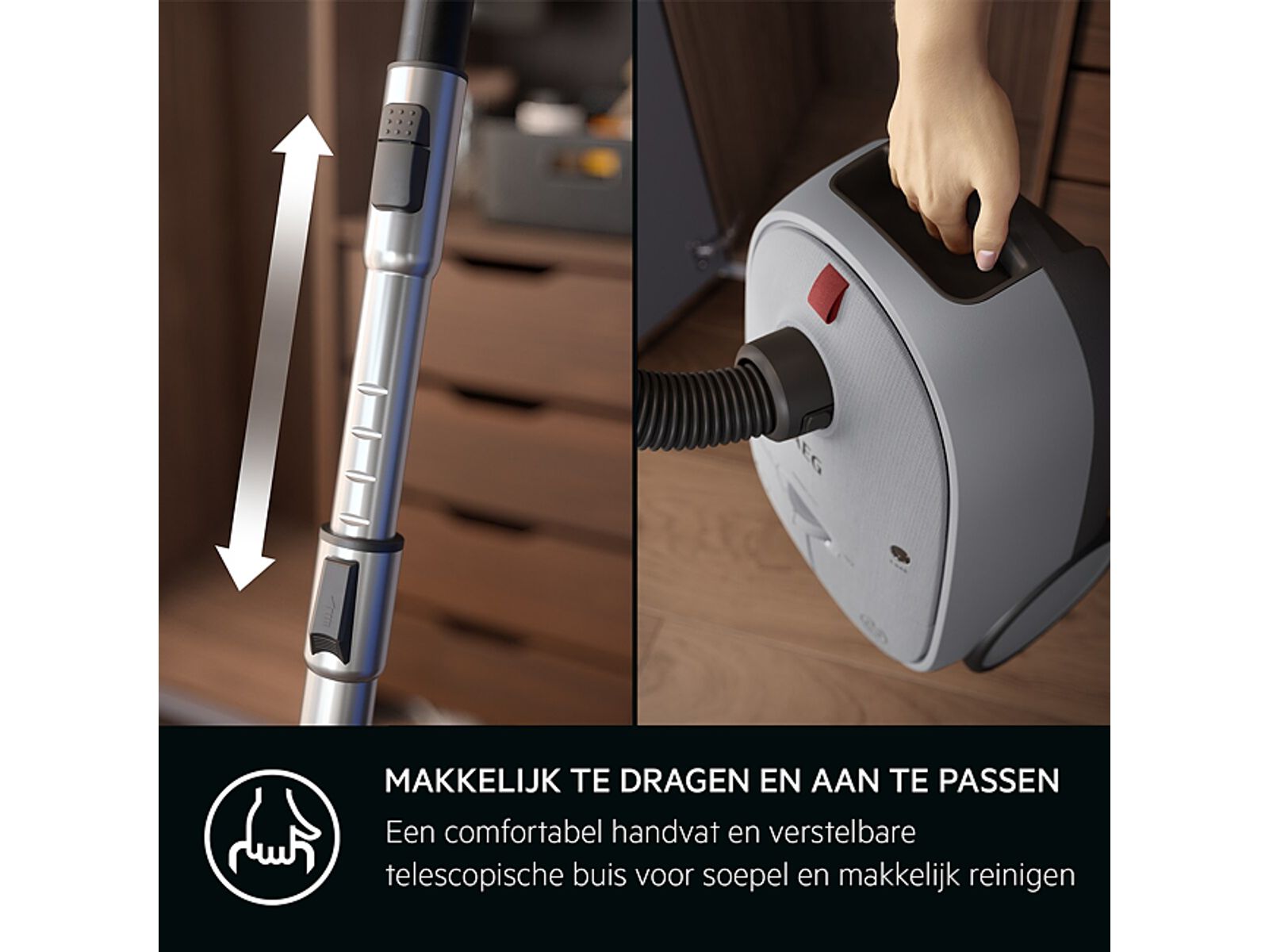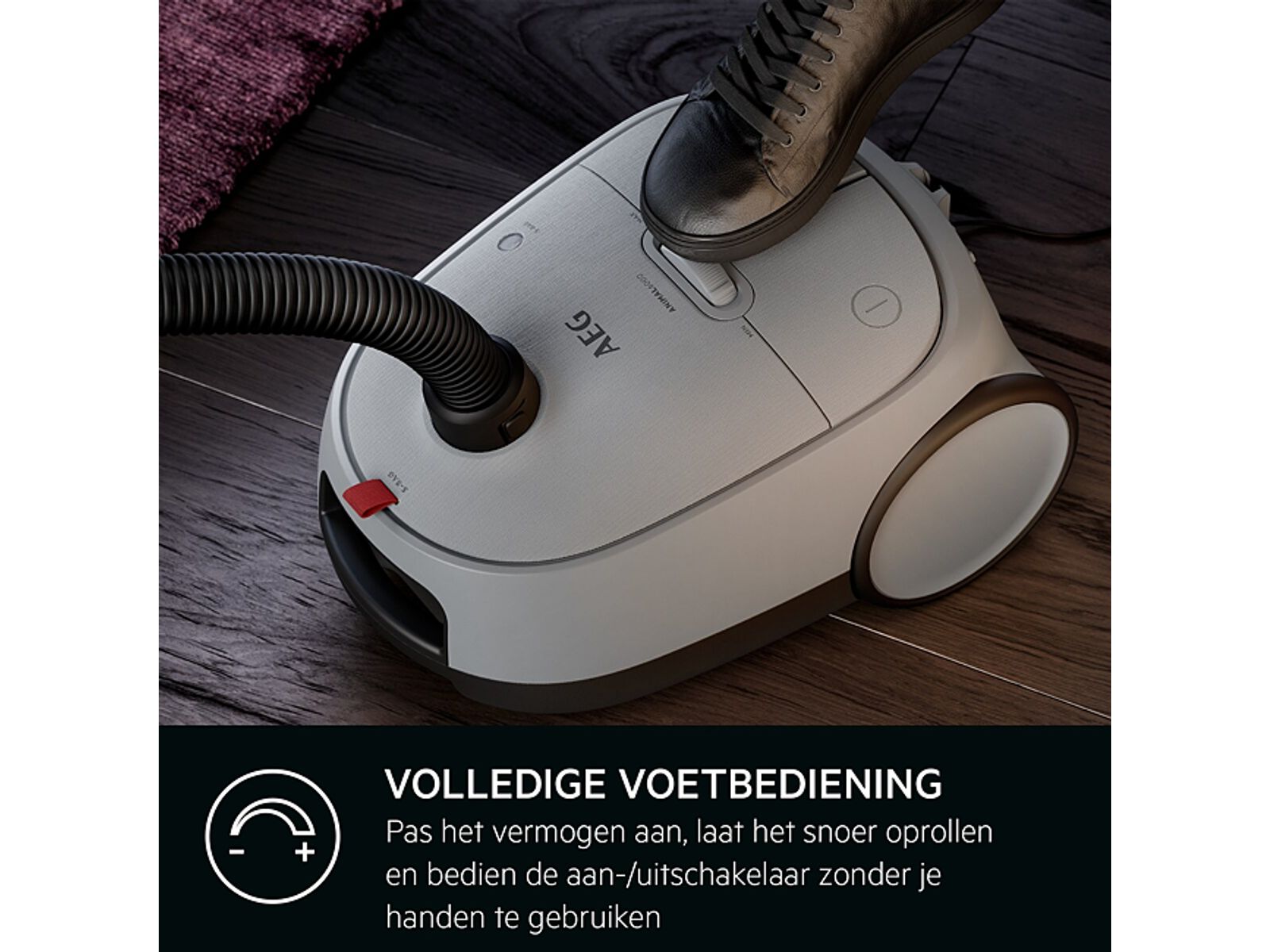 Pas heel eenvoudig de zuigkracht aan, schakel de stofzuiger aan/uit of gebruik de snoerhaspel met je voet. De ANIMAL 6000 stofzuiger met zak heeft een eenvoudige bediening zonder lastig bukken.