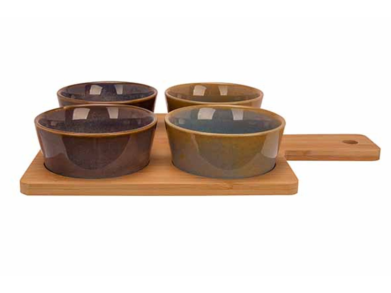 Serveerplank 31x21.5xh1cm Bamboe + 4 Bowls Multi-kleur D10x4cm