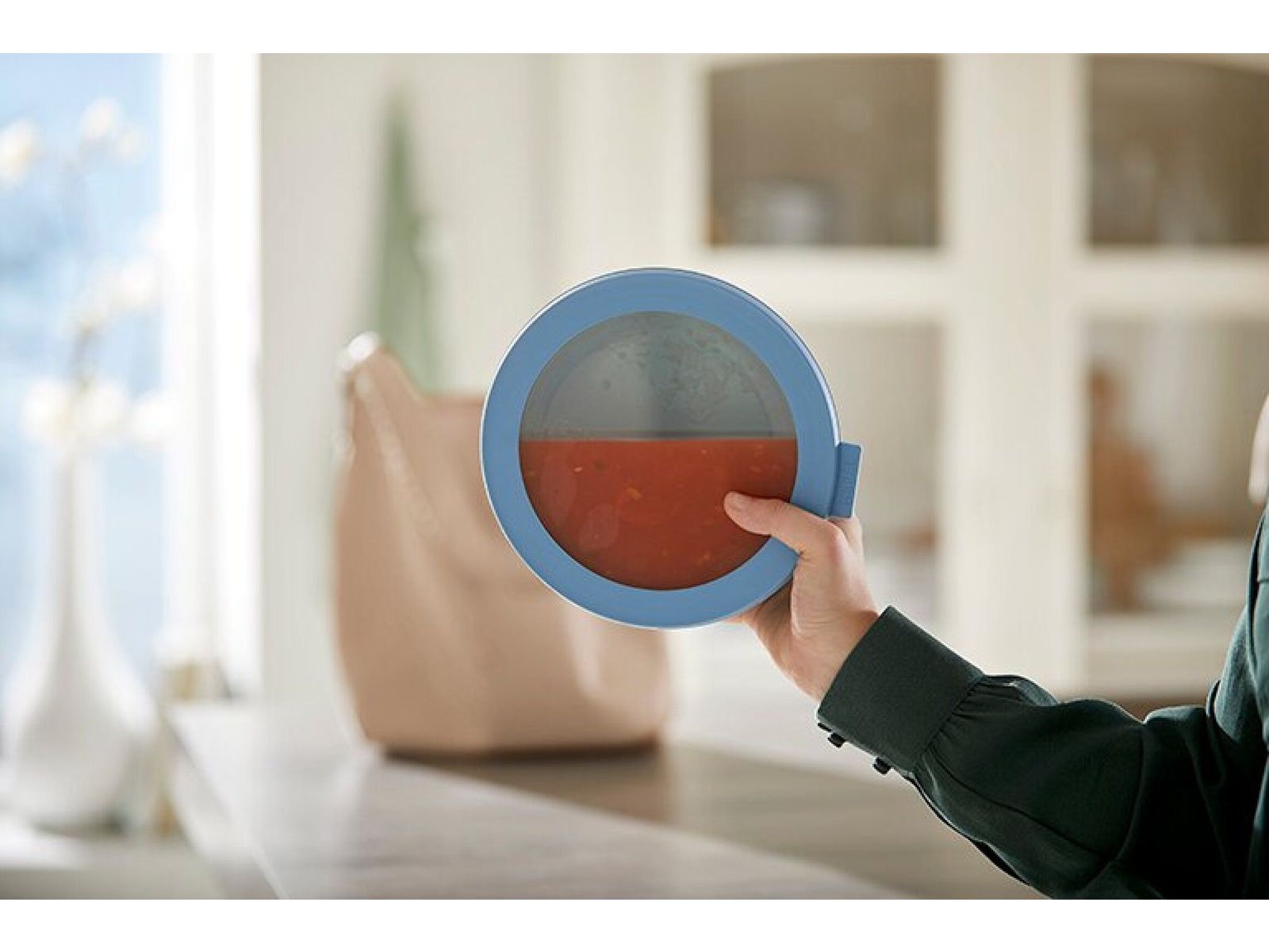 Mepal Cirqula multikom 2000 ml in de kleur Nordic sage. Deze groene schaal met een inhoud van 2000 ml is perfect voor het bewaren of meenemen van grote porties soep, vlees of maaltijdsalades. De Cirqula serie van Mepal is speciaal ontwikkeld voor een complete ‘circle of use’. Bewaar eten in de schalen in de koelkast of de vriezer, warm het op in de magnetron (deksel moet worden verwijderd) en serveer je maaltijd in de schaal (direct) op tafel. De Mepal Cirqula multikom is gemaakt van onbreekbaar materiaal. Het transparante venster in de deksel zorgt ervoor dat de inhoud goed zichtbaar is. De innovatieve, soepele deksel is luchtdicht en lekvrij. Hierdoor blijft voedsel langer vers en kan het perfect bewaard en meegenomen worden. De Mepal Cirqula multikommen zijn praktisch en gemakkelijk op te bergen omdat je ze op elkaar en in elkaar weg kunt zetten.