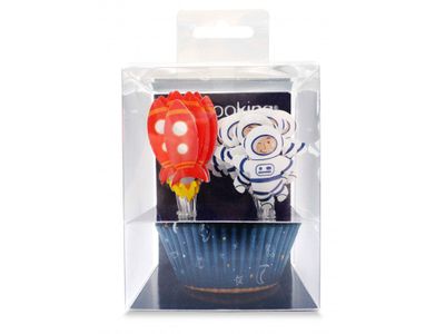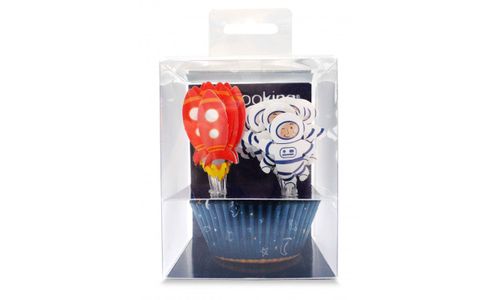 DECORATE YOUR CUPCAKES - Een decoratiepakket met 24 presentatiedozen + 24 taarttoppers in het thema "Space" om een ??ruimtelijk tintje aan je cupcakes te geven. Met ruimtes, raketten, planeten, sterren en meer, heel trendy om je gasten tijdens een verjaardag, een theekransje of een feest door de ruimte te laten reizen!