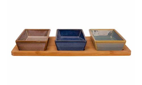 Serveerplank 31x14.5xh1cm Bamboe + 3 Cups Multi-kleur 12.5x8x3.2cm