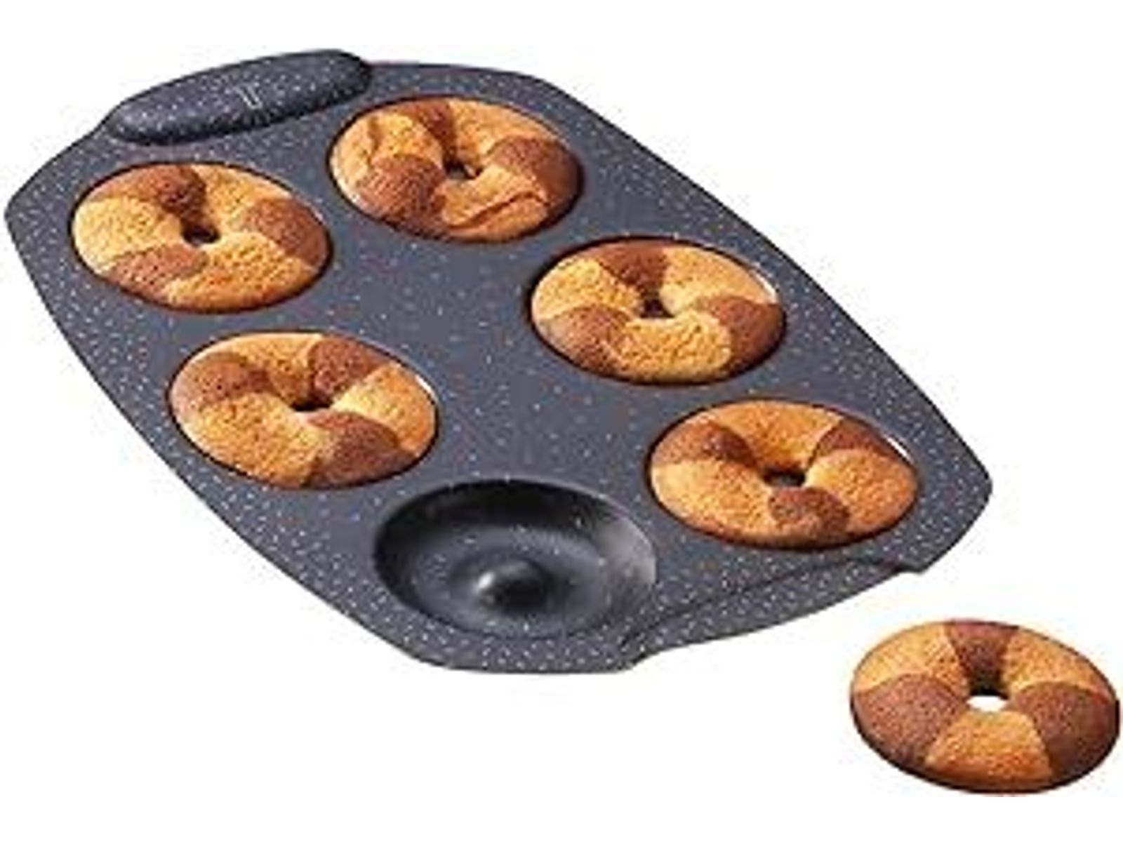Tefal PerfectBake Mini J5734602 Bakvorm voor 6 mini-donuts, antiaanbaklaag, gerecycled en recyclebaar aluminium, goudkleurig gebak, geproduceerd in Frankrijk, PerfectBake Mini J5734602, tabaksbruin