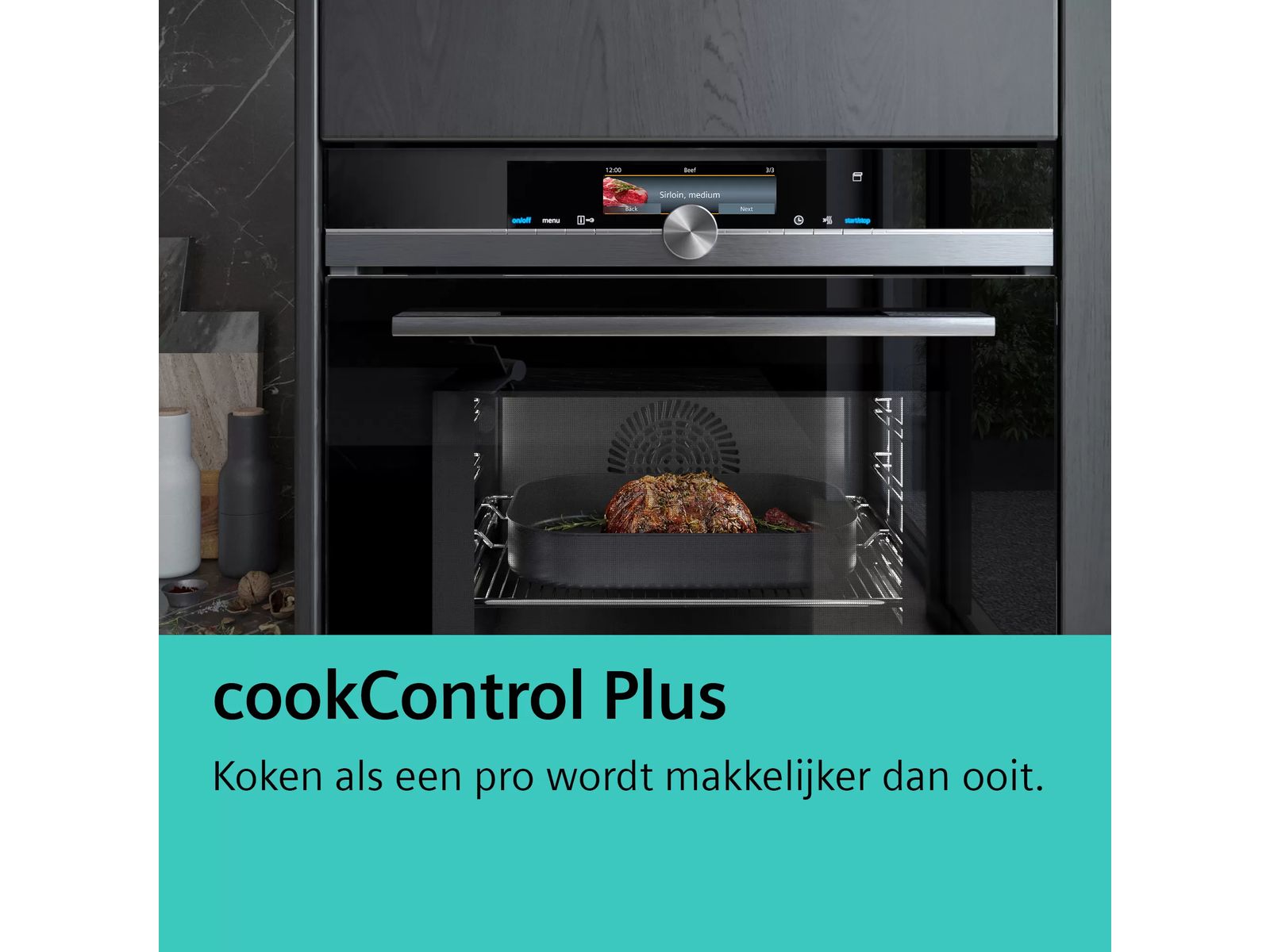 Klaar om een heerlijke quiche te bakken? Nu heeft u een ideale bakpartner. cookControl Plus houdt de voortgang van uw bereiding in de gaten en stemt uw oveninstellingen hierop af. Selecteer uw gerecht en de oven past de verwarmingsmodus, de temperatuur en de tijd automatisch aan. Uw bakkunsten worden gegarandeerd een succes, en u zult de bespaarde tijd best kunnen smaken.