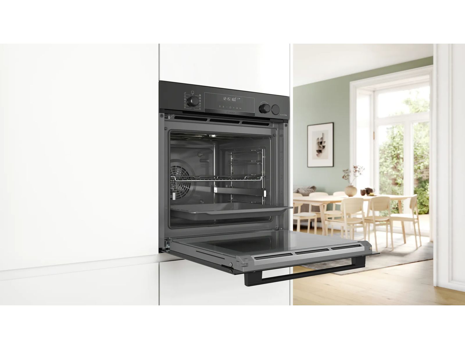 Met traditionele telescopische rails ben je beperkt tot drie hoogteniveaus waarop je bakplaten kunt inschuiven. Bosch biedt daarnaast ook niveau-onafhankelijke telescopische rails. Daarmee kun je de lade op ieder gewenst niveau plaatsen, inclusief het grillniveau, wat roosteren nog makkelijker maakt. De lade is eenvoudig vast te maken en te verwijderen.
