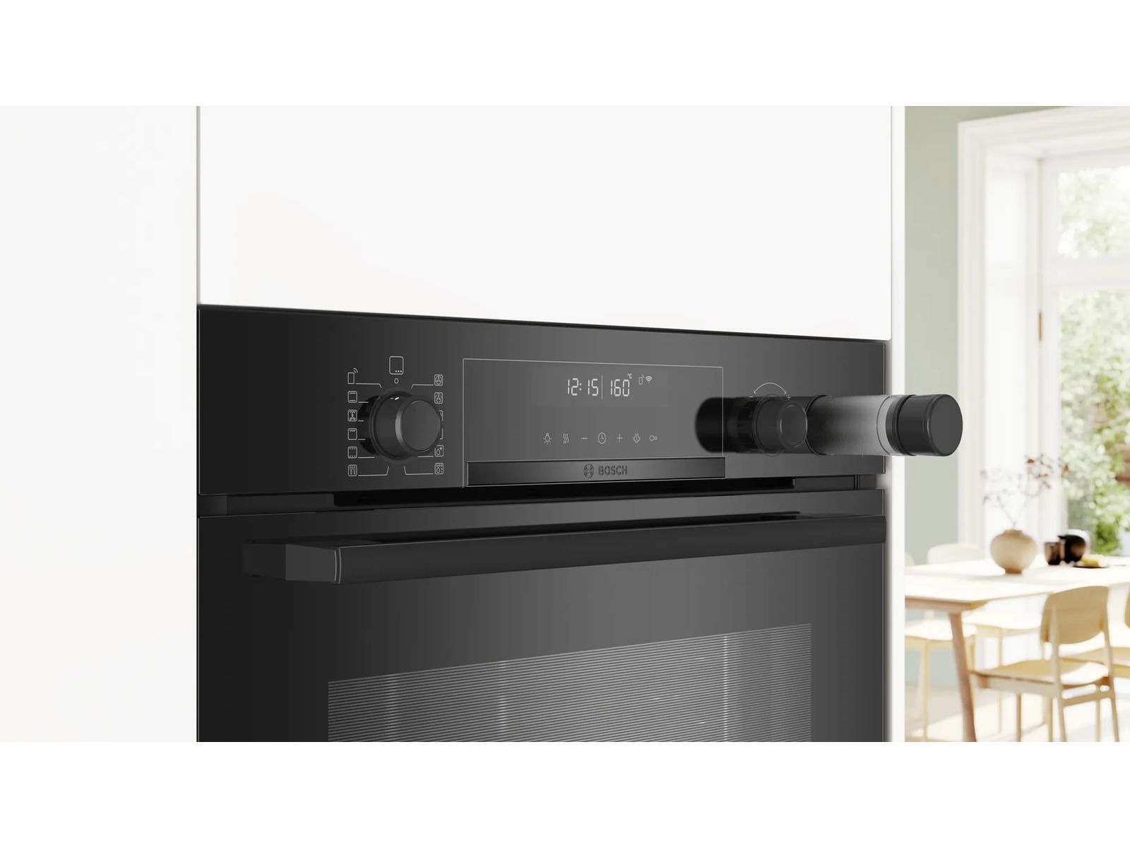 De ingebouwde Braadthermometer houdt uw gerechten perfect op de juiste temperatuur. U hoeft hem alleen maar in uw gerecht te steken, te verbinden met de oven en de gewenste kerntemperatuur te selecteren. Zo wordt bijvoorbeeld uw vlees op een lage stand altijd heerlijk mals en sappig.