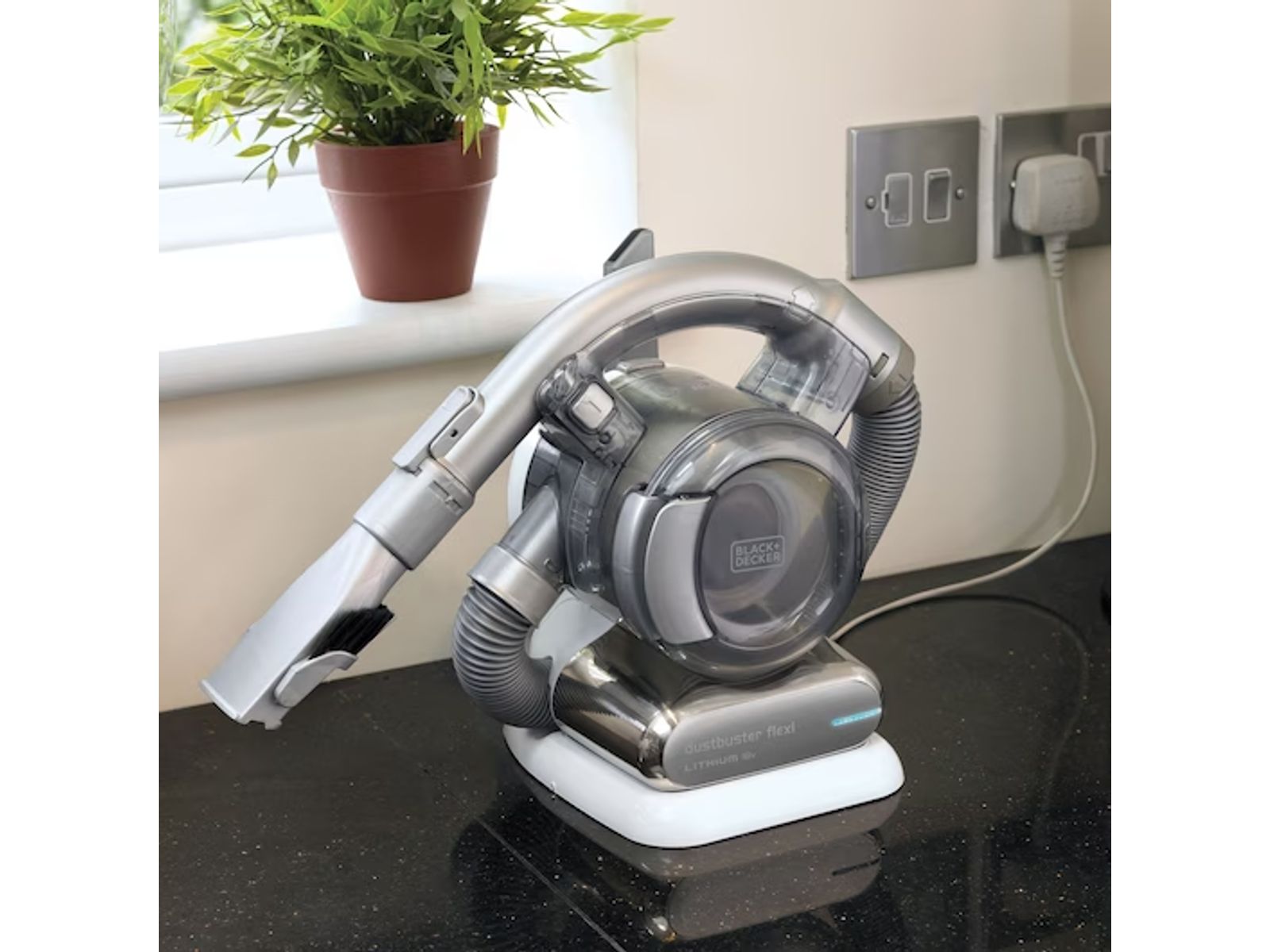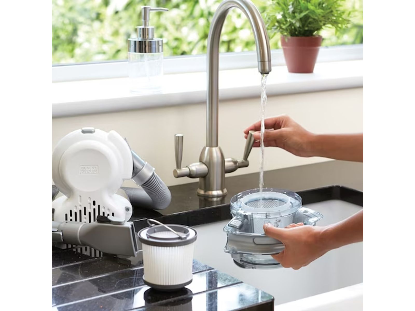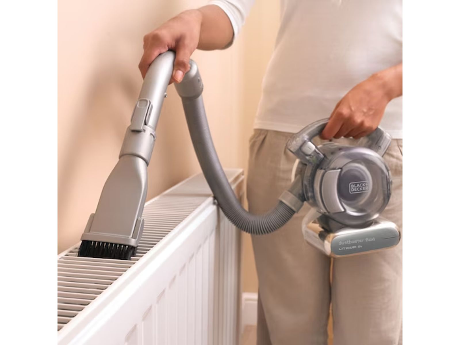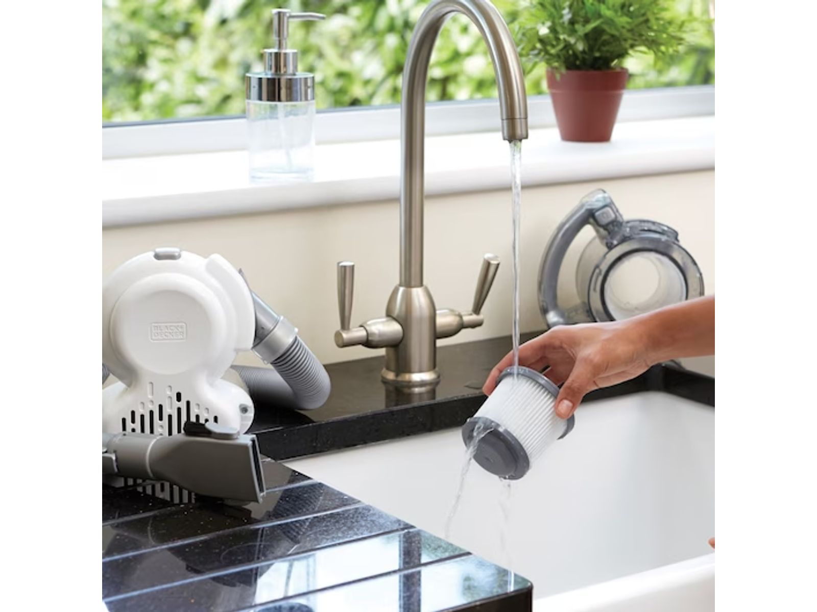 Deze BLACK+DECKER 18V 1.5Ah Flexi Kruimeldief is de ideale oplossing voor veeleisende schoonmaakklussen. Geniet tot 18 minuten werktijd, zonder verlies aan kracht. Dankzij de 1.5m flexibele zuigslang en de meegeleverde 2IN1 kierenzuiger met zachte borstel en de lange kierenzuiger zijn ook hoeken en andere moeilijk bereikbare ruimtes in een mum van tijd weer schoongemaakt. Het moderne en compacte design past in elke woning. Dankzij de Cyclonic action filtertechnologie met 3-voudige filtratie zijn krachtige prestaties gegarandeerd. Het 560ml grote opvangreservoir is eenvoudig te legen. De filter en het reservoir zijn verwijderbaar en eenvoudig schoon te maken. Doe dit regelmatig om optimale prestaties te blijven garanderen. Laad de kruimeldief eenvoudig op in het meegeleverde laadstation.