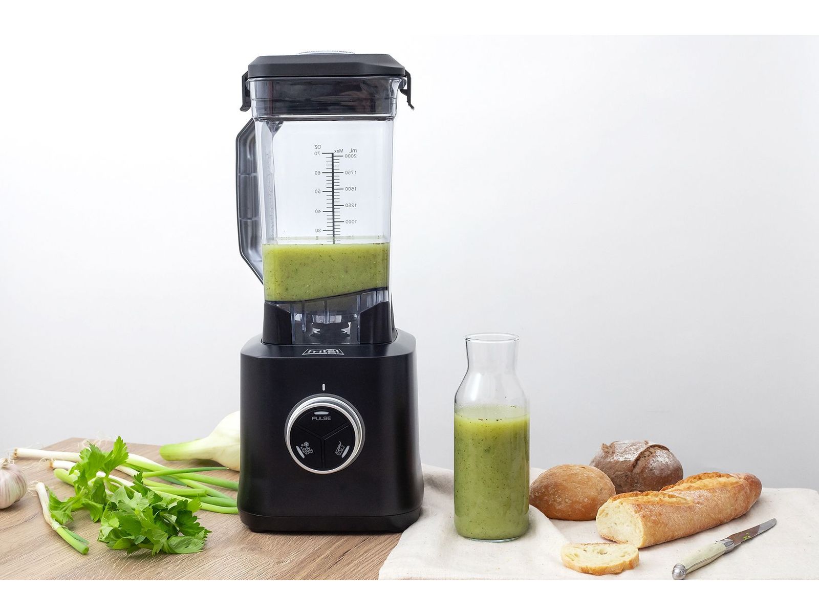 Deze high efficiency blender is een onmisbaar instrument voor eenieder die graag kookt. Soepen worden gemixt in een mum van tijd, purees worden fluweelzacht, ice crushen is een koud kunstje. En sapjes, smoothies, milkshakes en cocktails vormen al helemaal geen uitdaging. Uitgerust met een unieke beveiliging zodat de blender niet werkt indien niet correct afgesloten.
