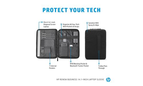 HP Renew Business 14,1-inch laptoptas. Type etui: Documententas, Maximale schermgrootte: 35,8 cm (14.1"). Gewicht: 490 g. Oppervlakte kleur: Monochromatisch