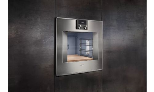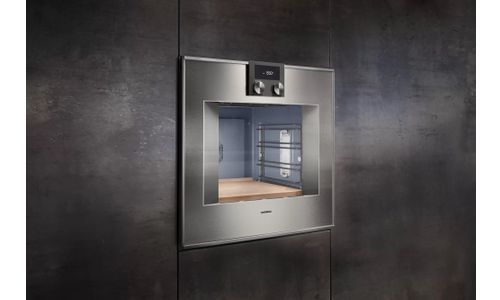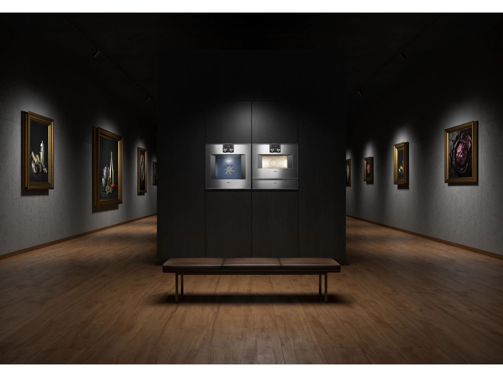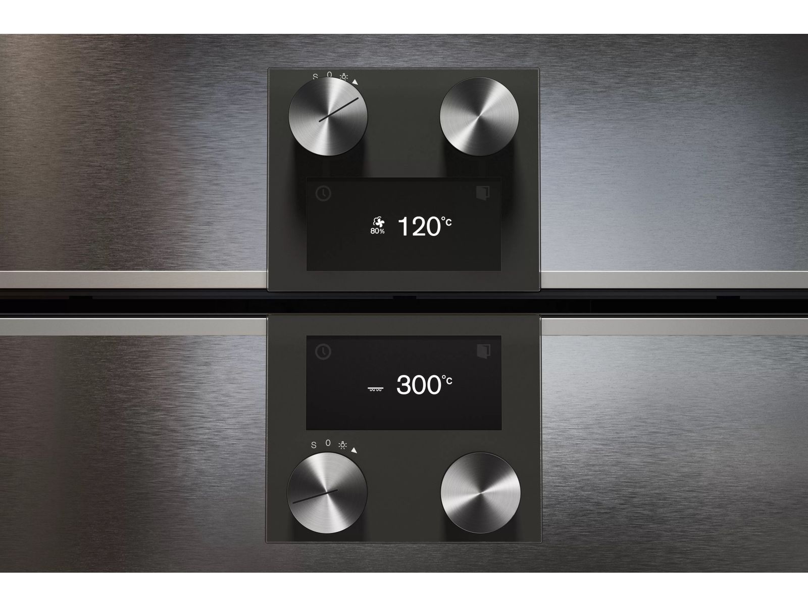 Het karakteristieke uiterlijk van Gaggenau wordt gekenmerkt door de volledig glazen deur die iets uitsteekt. Druk op het TFT-Touchdisplay om de greeploze deur de complete 180 °C te openen.