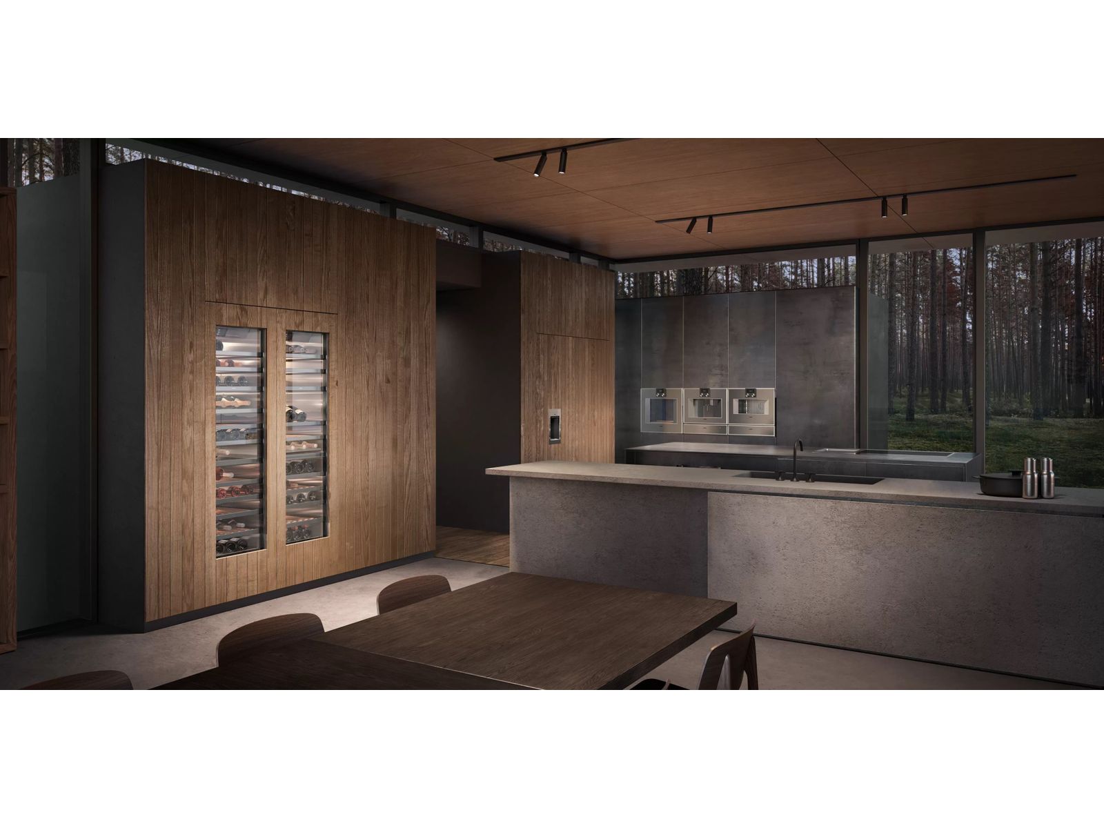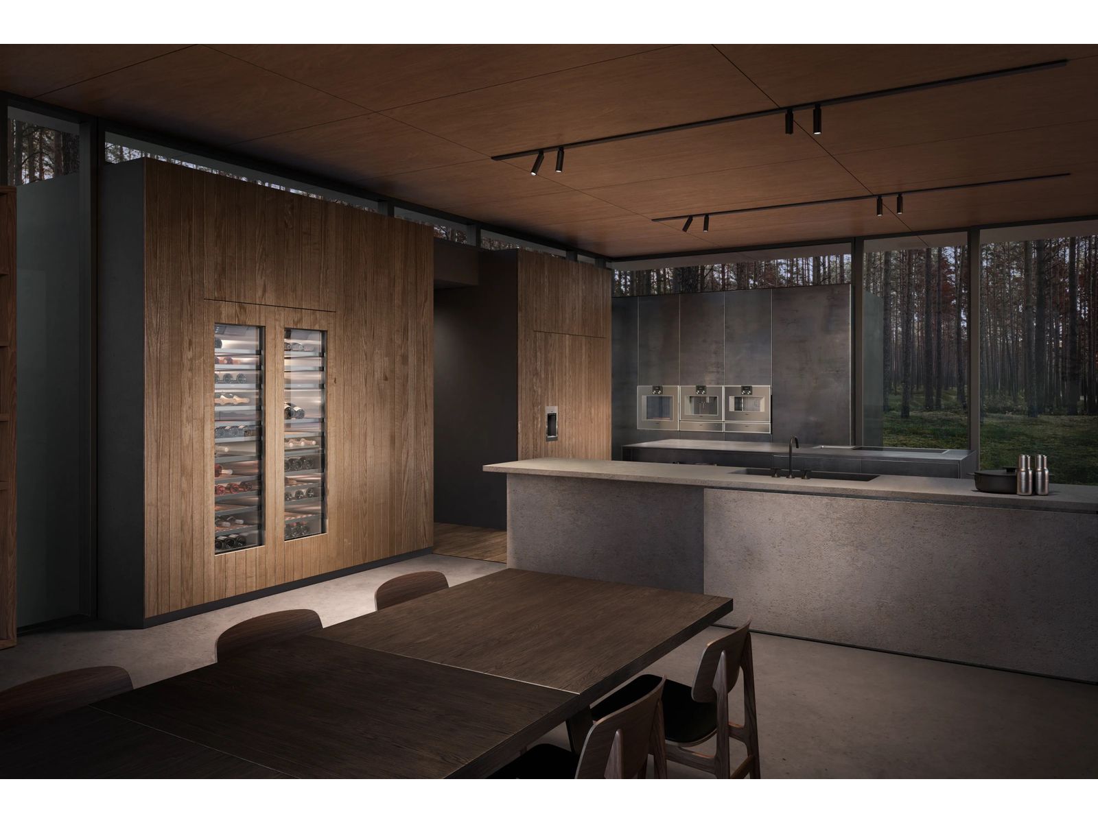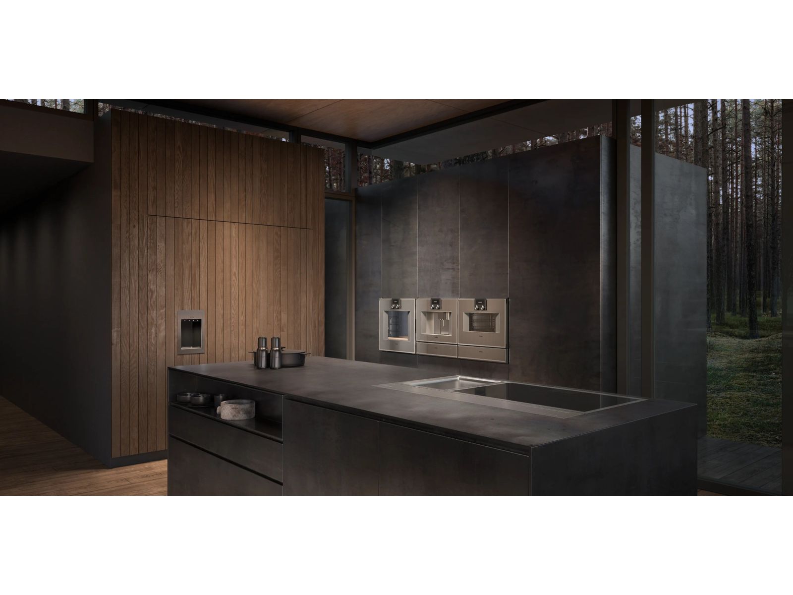 Het karakteristieke uiterlijk van Gaggenau wordt gekenmerkt door de volledig glazen deur die iets uitsteekt. Druk op het TFT-Touchdisplay om de greeploze deur de complete 180 °C te openen.