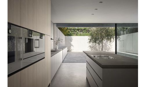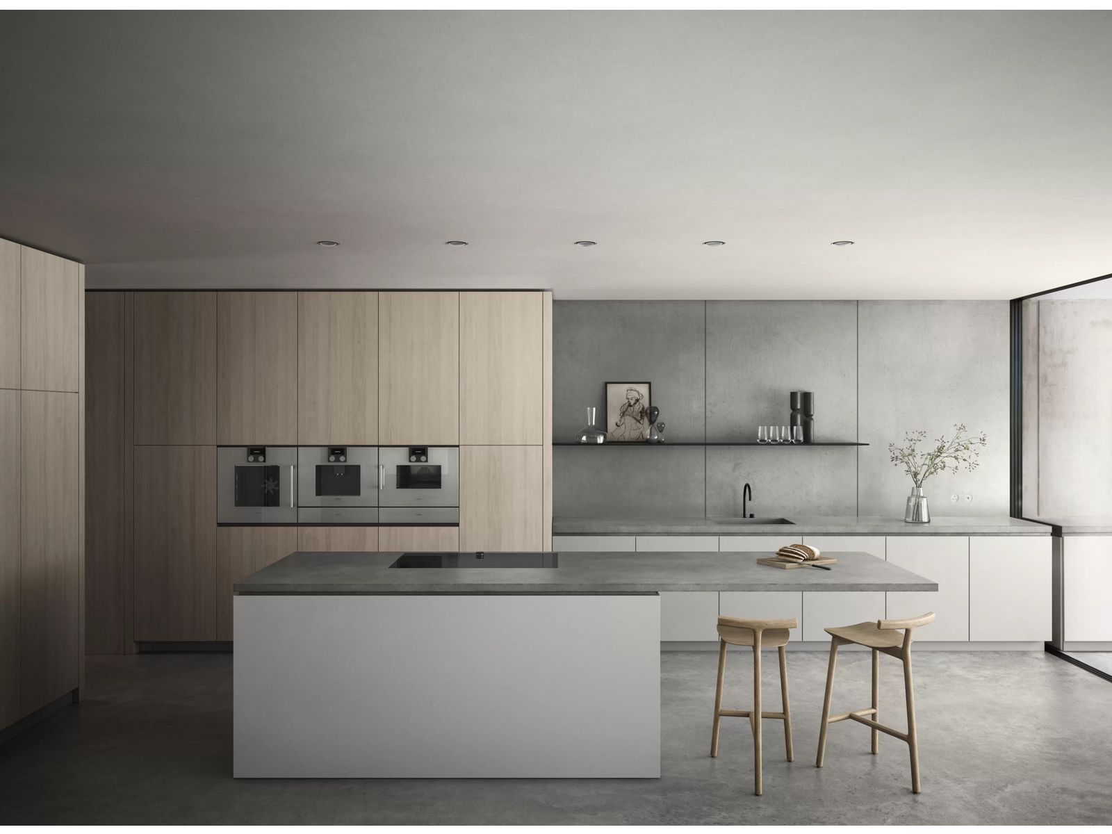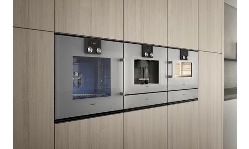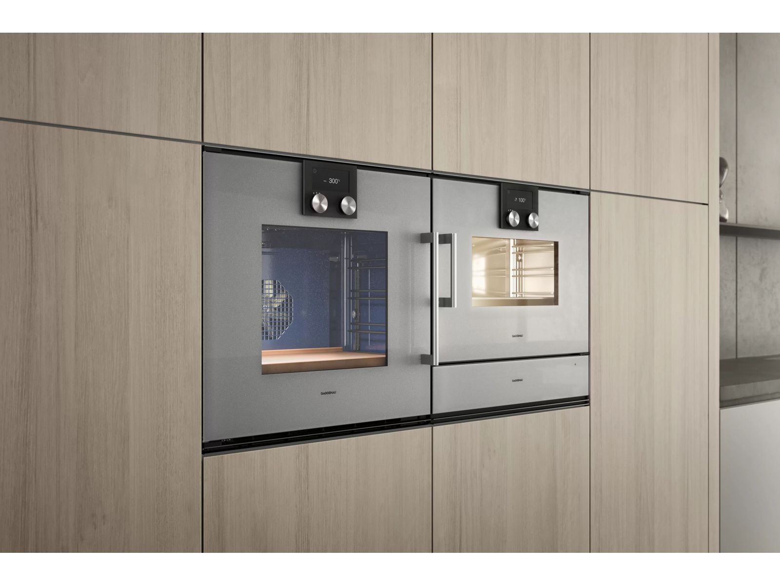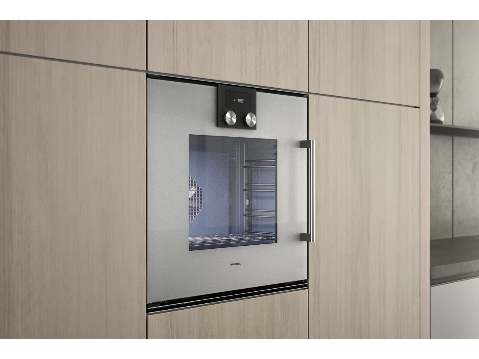 Het karakteristieke uiterlijk van Gaggenau, vlak ingewerkt, nodigt uit om aan de handgreep te trekken en de deur de volle 110 °C te openen.